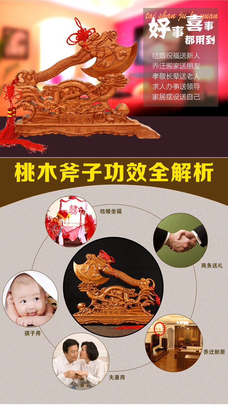 家居用品、厨卫清洁 > 装饰品 > 开光桃木雕刻斧子摆件客厅搬家乔迁镇宅辟邪剑结婚坐福装饰工艺品