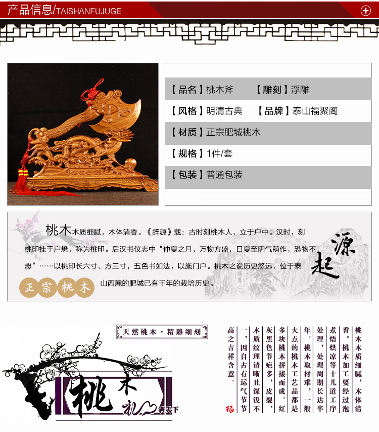 • 商品名称:开光桃木雕刻斧子摆件客厅...