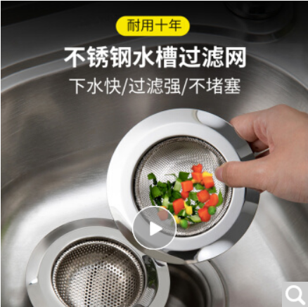 家居用品、厨卫清洁 > 厨具 > 静闲居 厨房水槽过滤网水池下水道网兜洗菜盆漏网不锈钢洗碗池剩菜滤网大号地漏过滤器防臭防堵神器提笼 不锈钢2个装(粗网+细网)