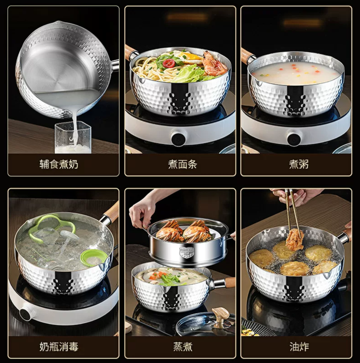 这款日式平底雪锅采用316材质,无涂层更安全,耐酸耐腐蚀,适配宝宝辅食,热奶等场景。锤目纹锅身不易溢锅,双向导倒汤不撒,明火电磁炉通用,煮面煮汤通用。