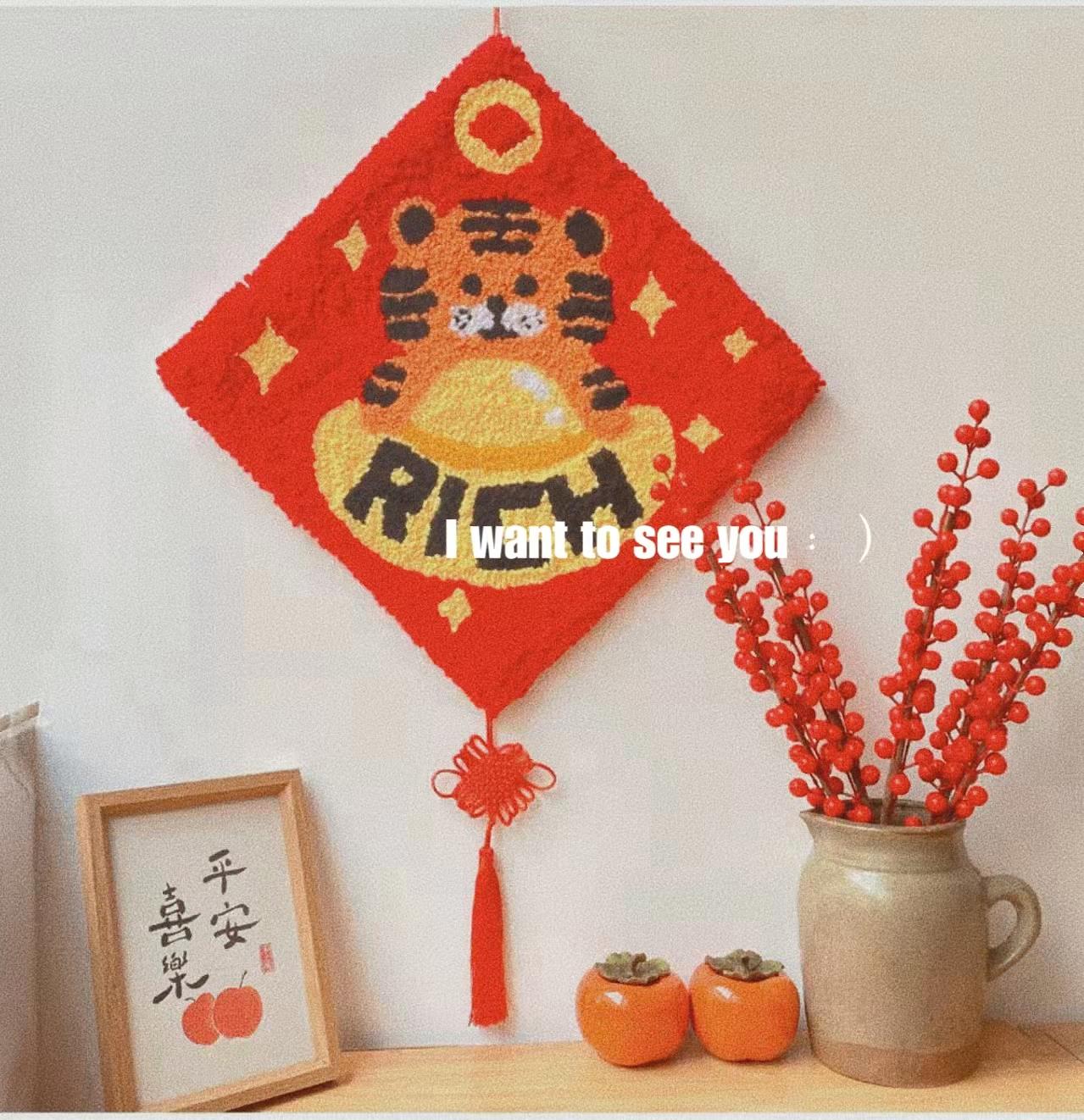 全套材料包,内含带图方形绣绷、戳针、手工白胶、刮板、毛线、缝纫包、不织布、挂绳/中国结以及视频教程。