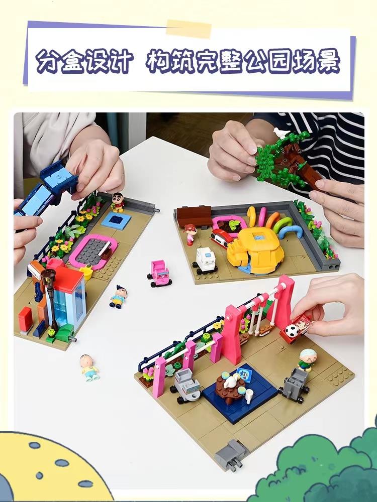 分盒设计,构筑完整公园场景,搭建春日部队五人组,采用全印刷0贴纸 还原玩乐日常,超多细节等你来拼哦