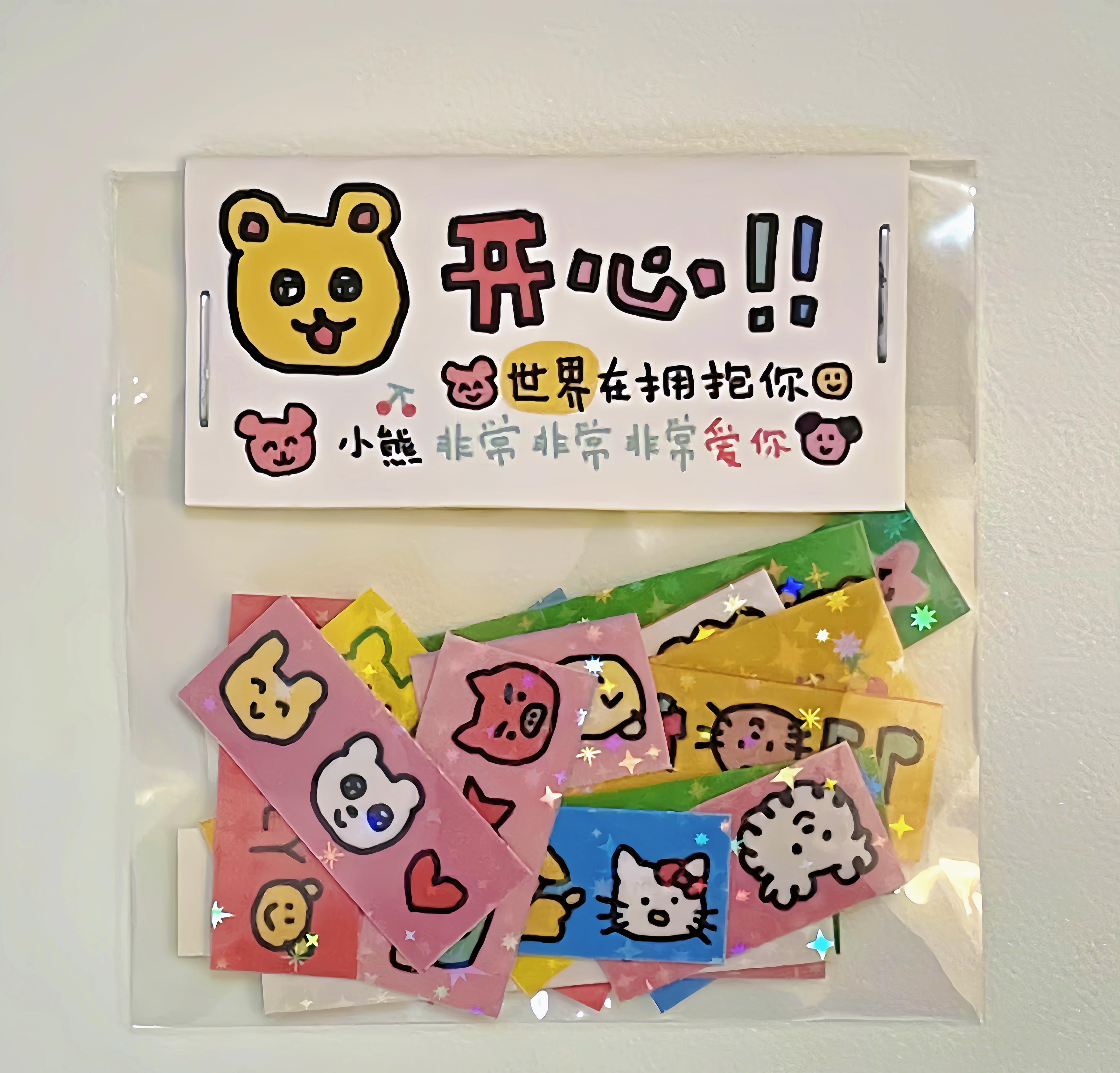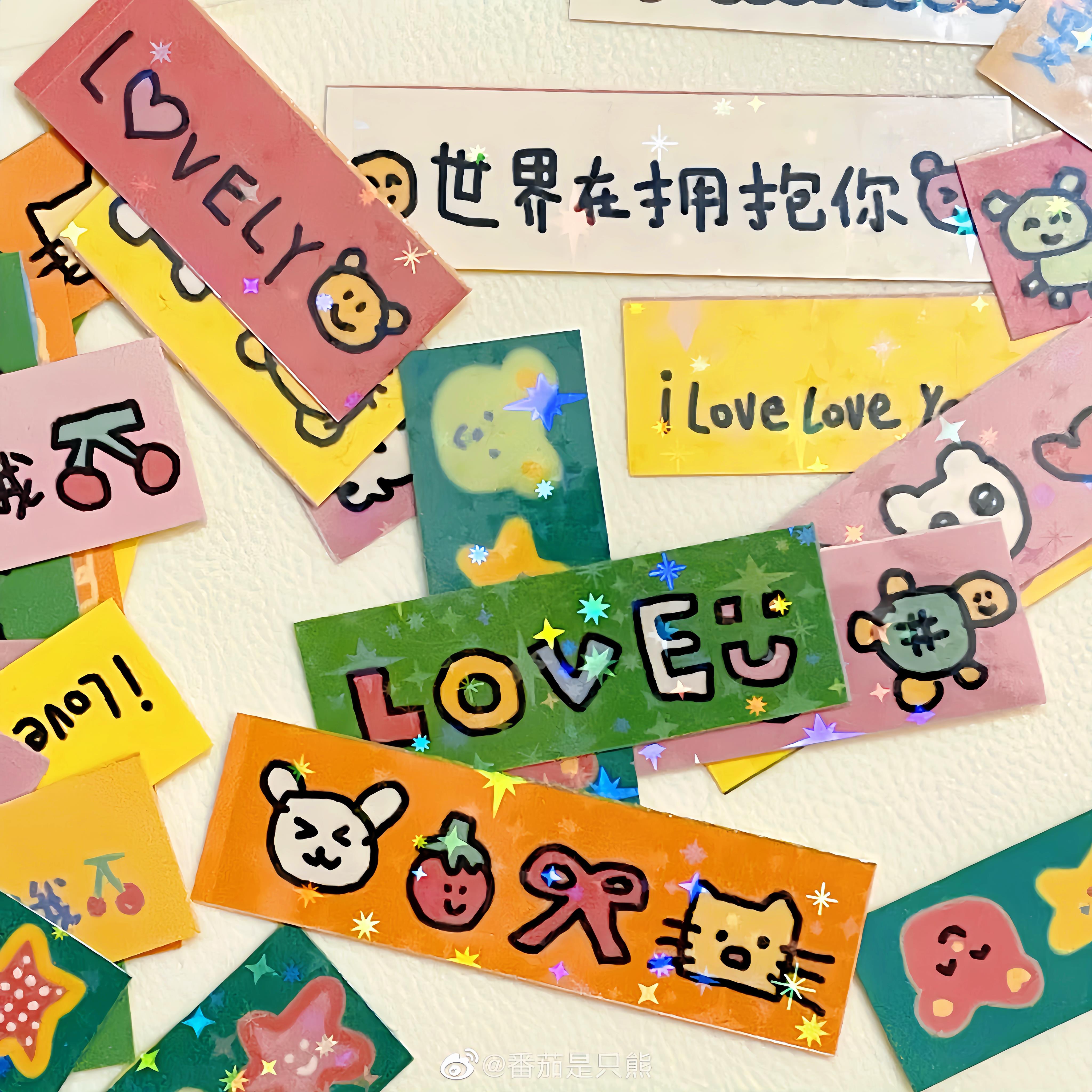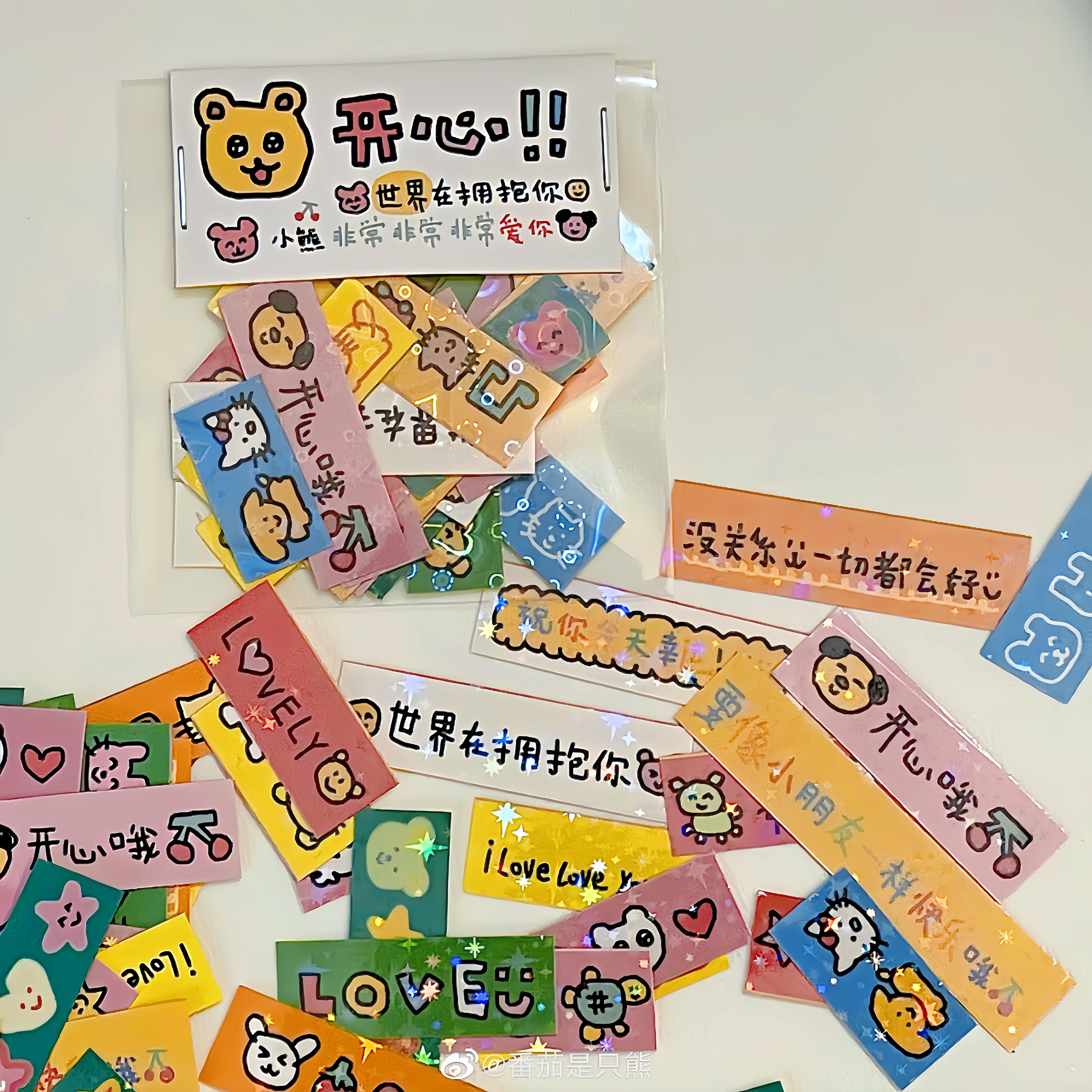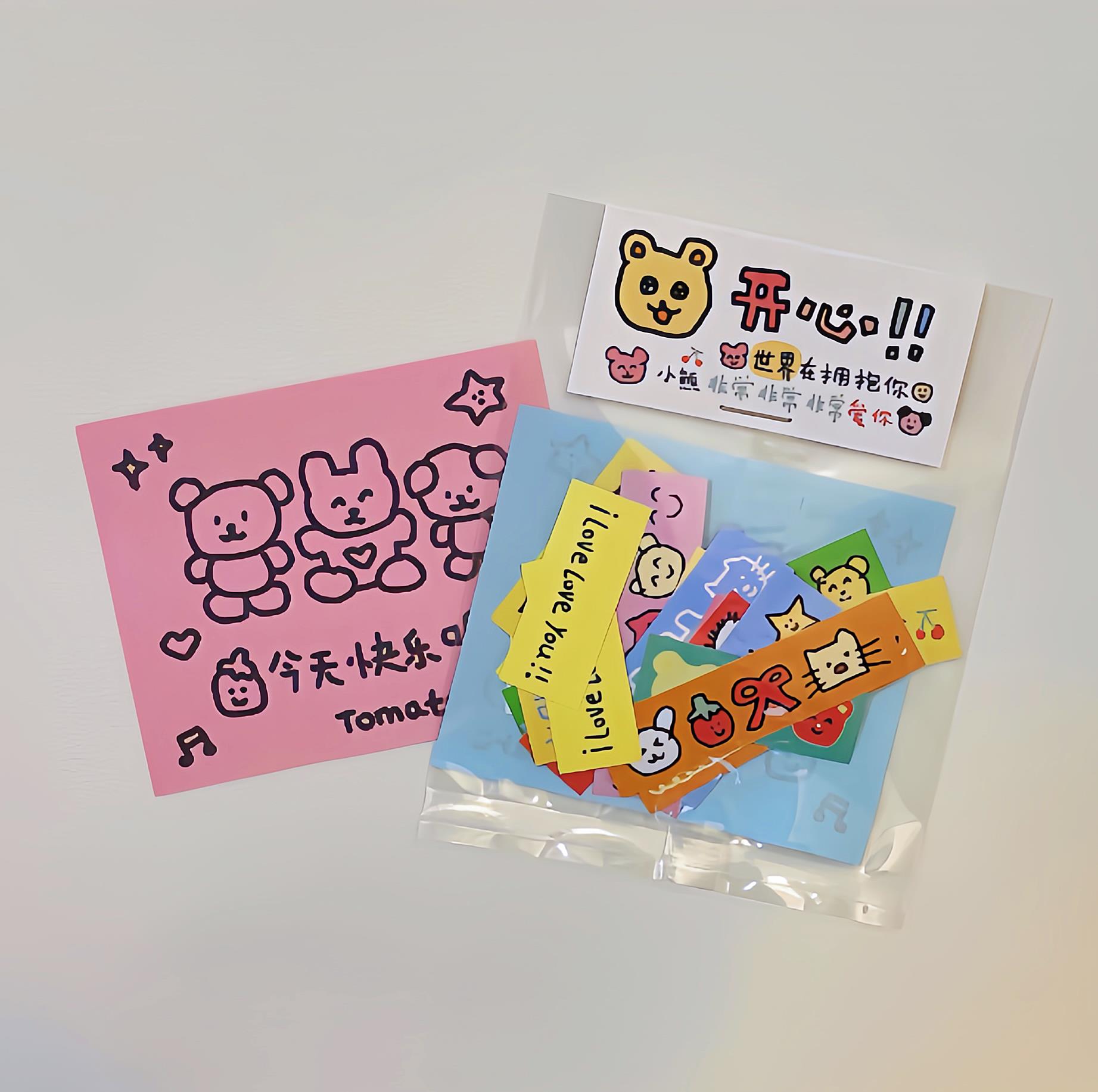 番茄小熊原创商品-涂鸦童趣风小熊手账贴纸