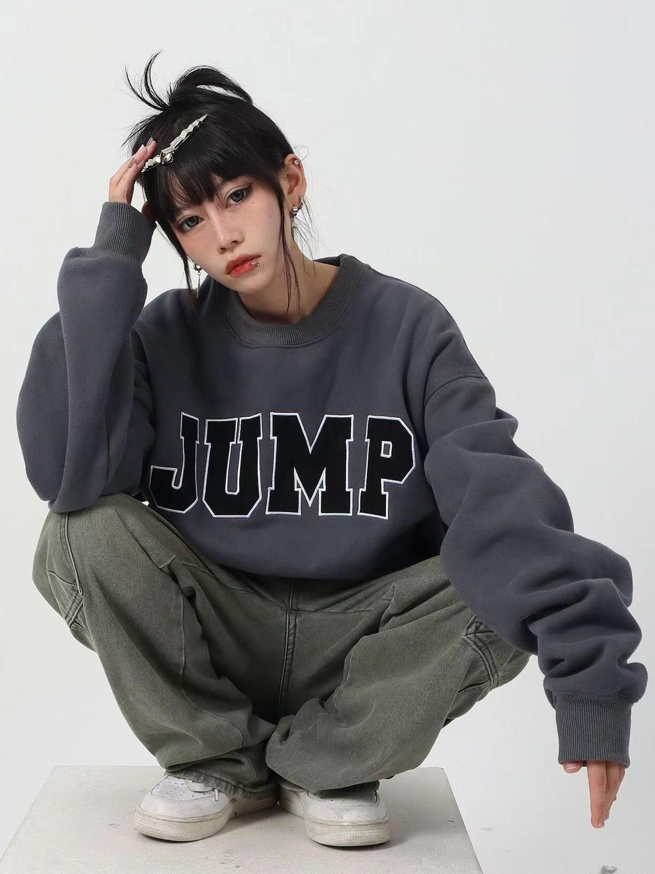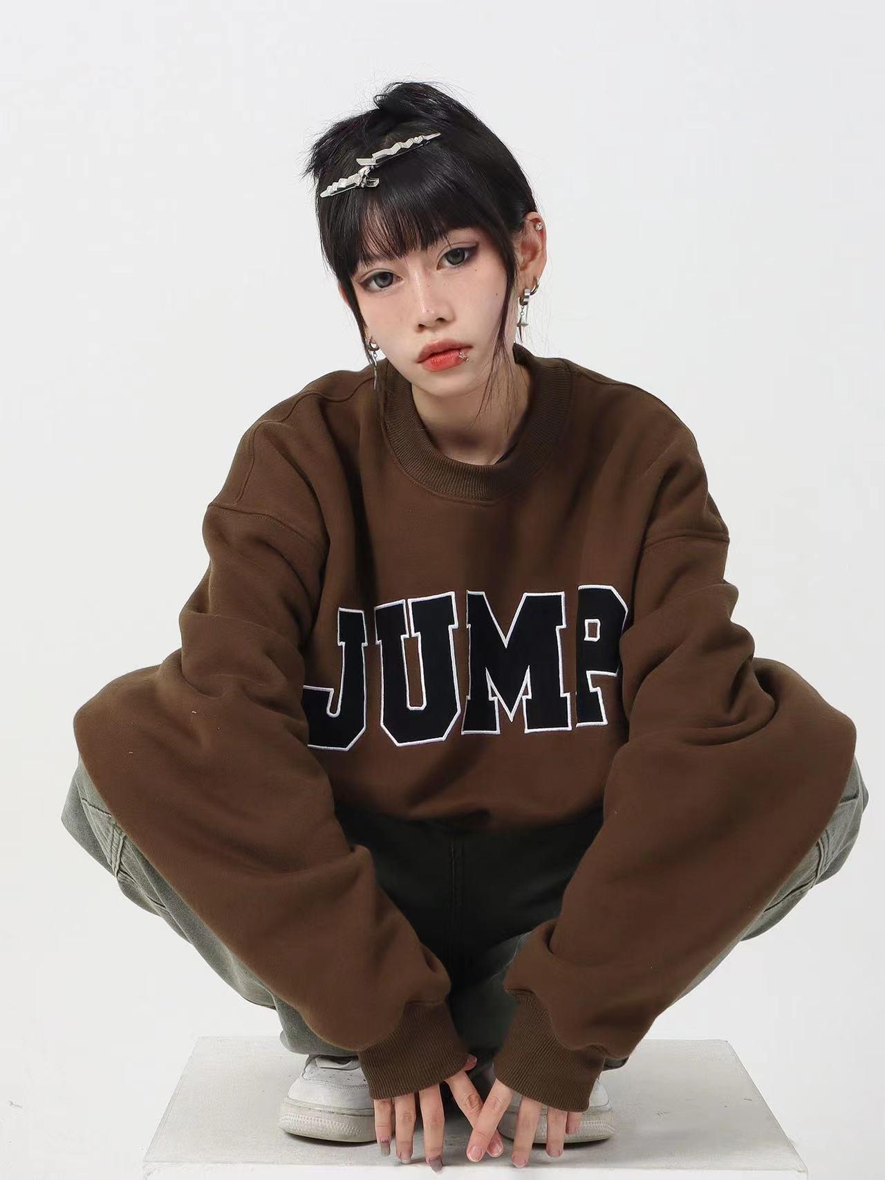今天穿什么 国潮牌美式复古麂皮绒贴布绣字母冬加绒宽松情侣圆领卫衣