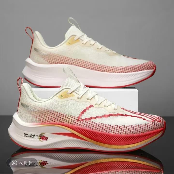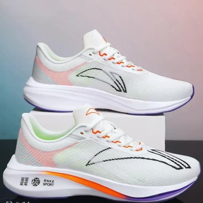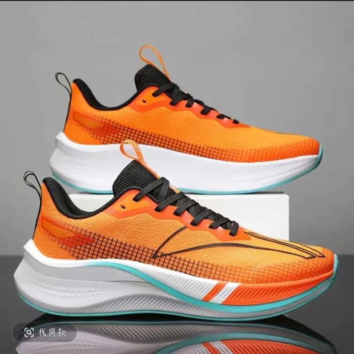 该鞋具有减震功能,适合跑竞速,鞋底具有碳板,鞋垫材质是EVA,帮面材质飞织,外底材料是橡胶+PHYLON+TPU