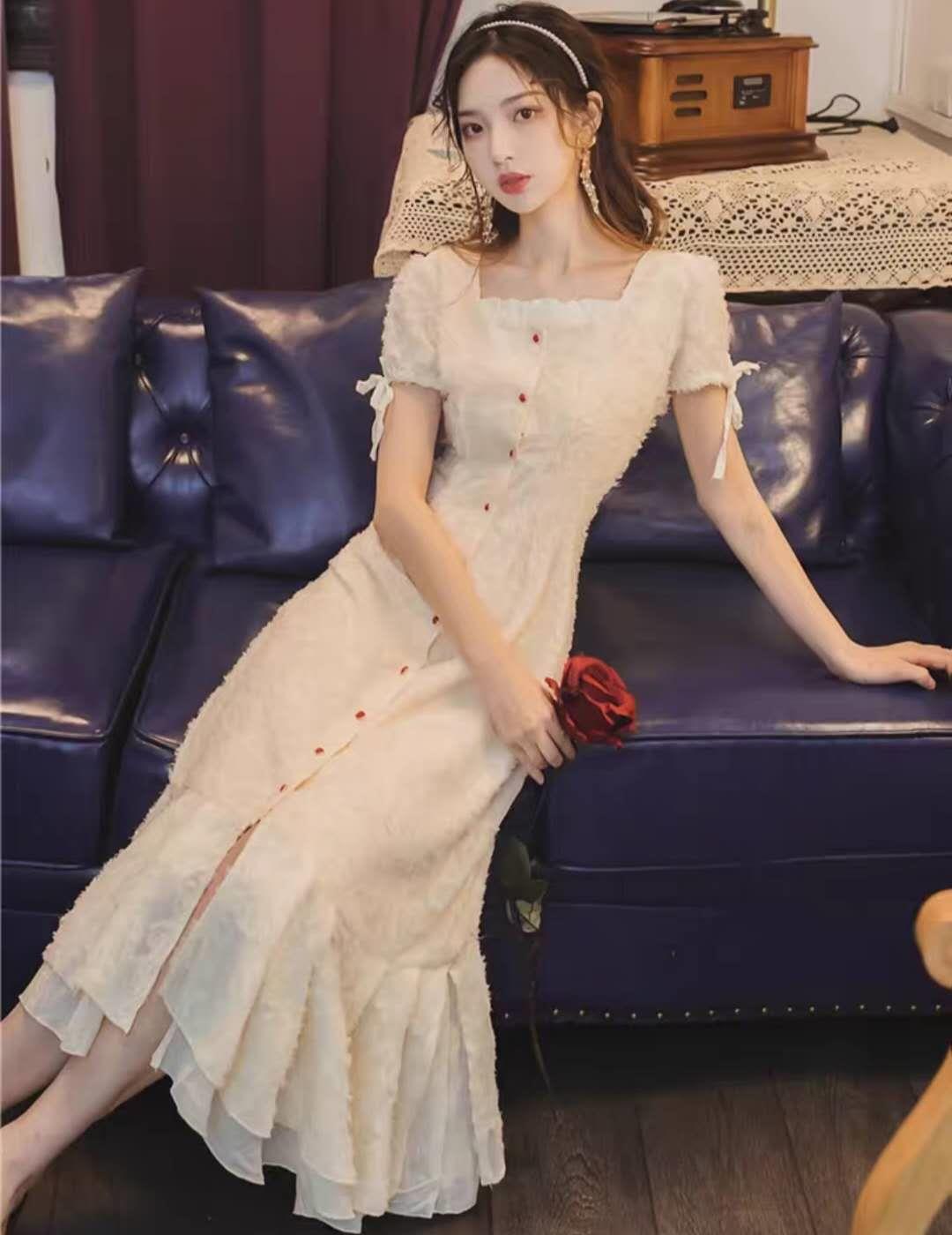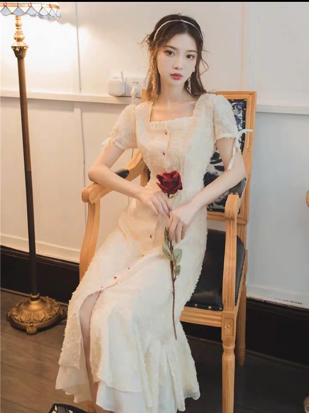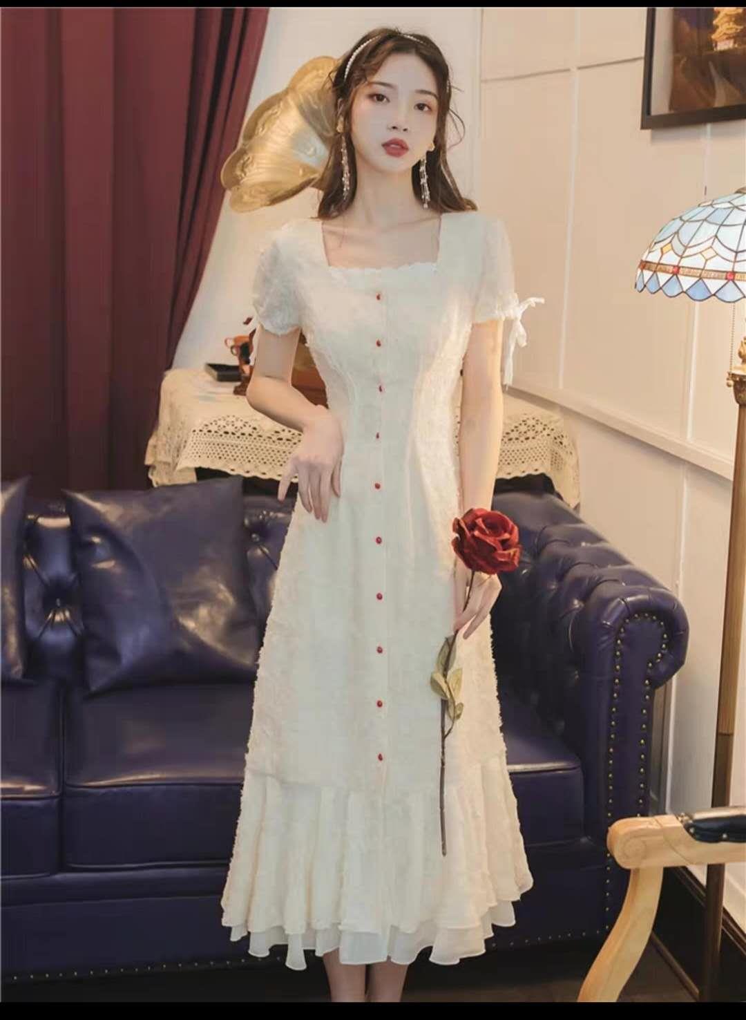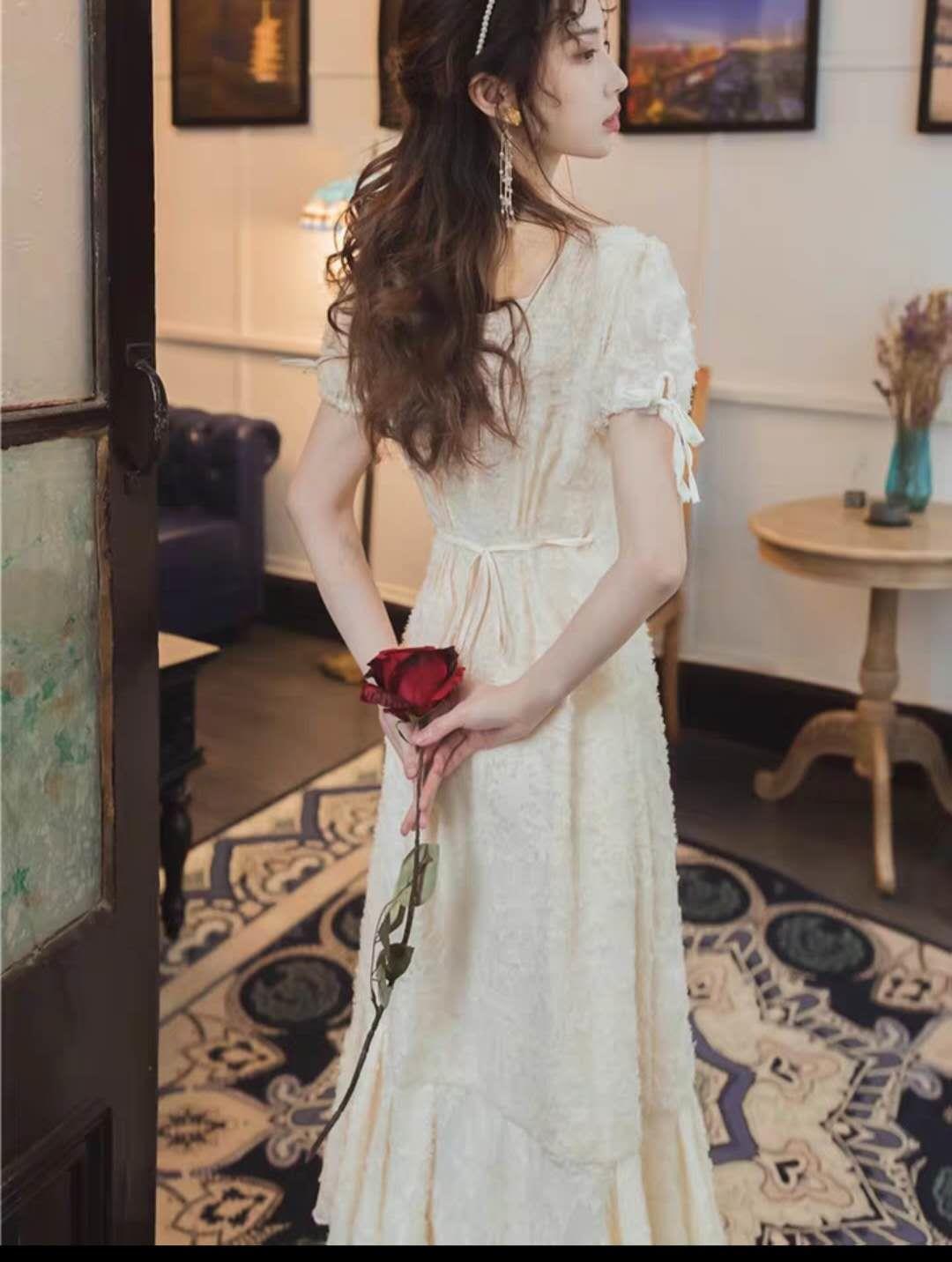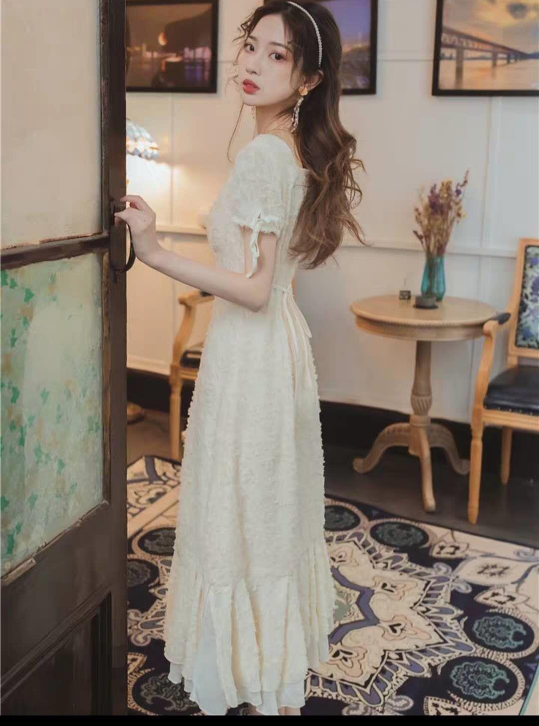很仙的法式复古少女过膝桔梗长裙2020夏季新款超仙海边度假连衣裙