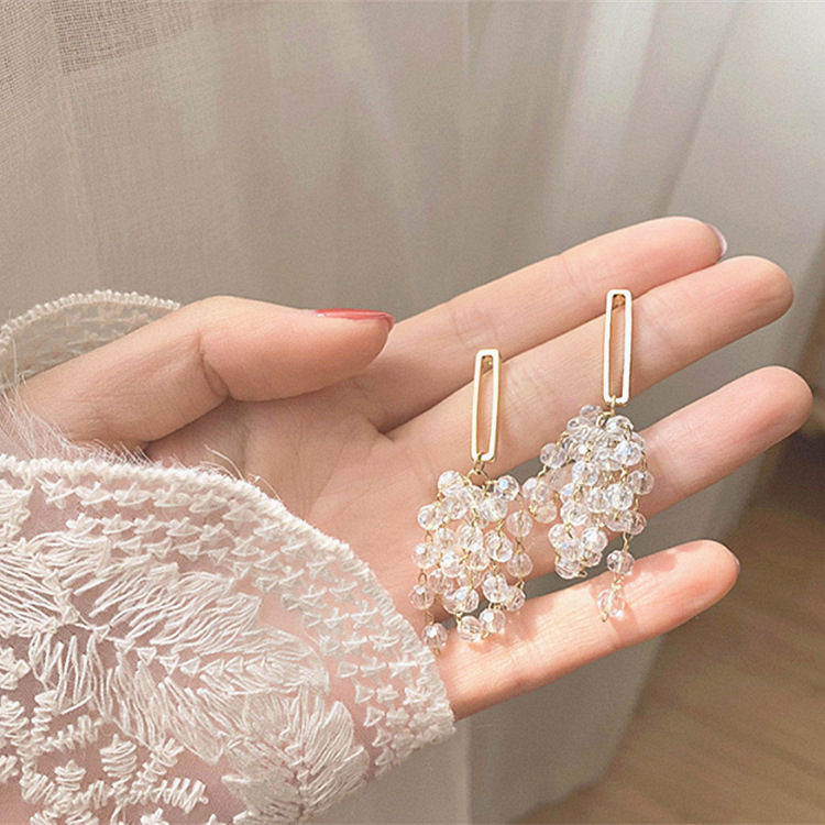 s925银针耳钉长款水晶流苏葡萄耳环女韩国小众高级感耳饰气质耳坠