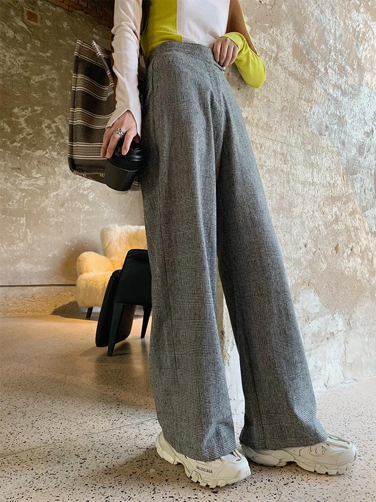 超复古格纹阔腿裤,宽宽大大的极度时髦