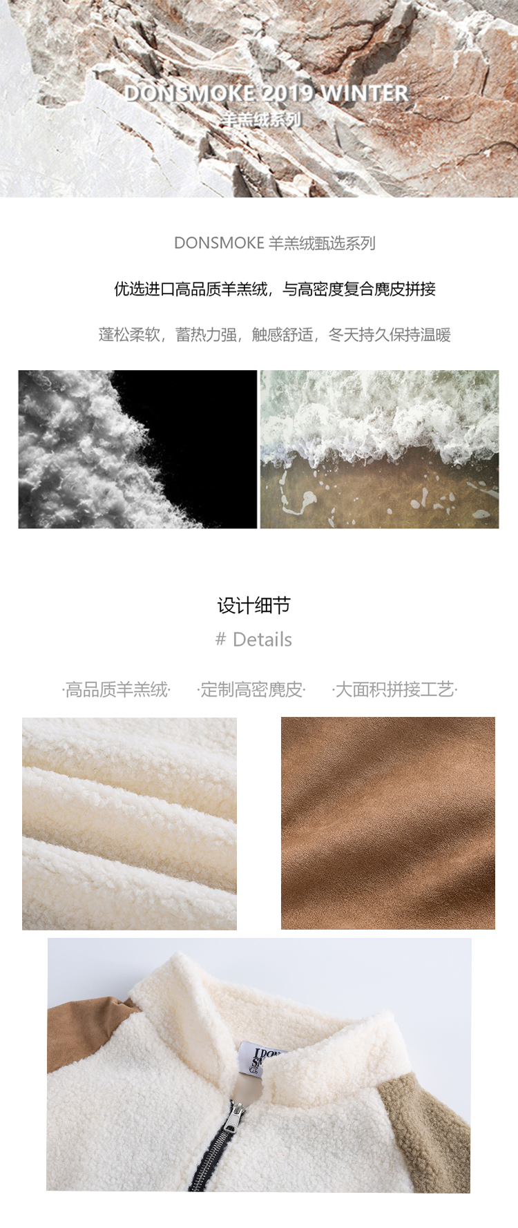 羊羔绒麂皮拼接拼色口袋保暖秋冬夹克外套