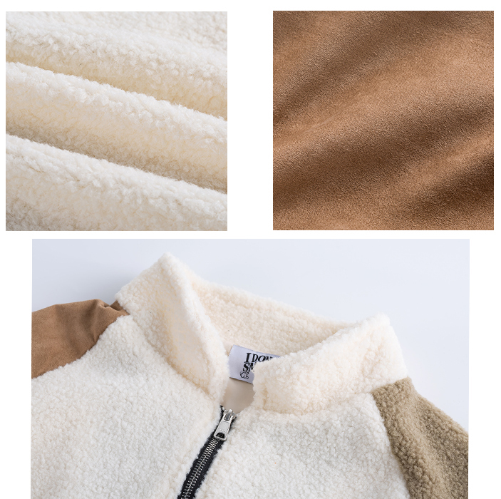 • 商品名称:羊羔绒麂皮拼接拼色口袋保...