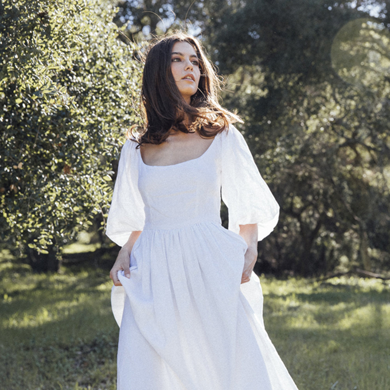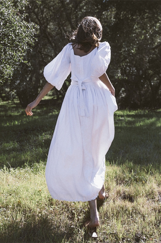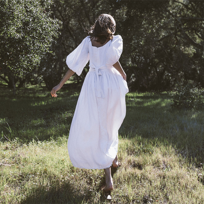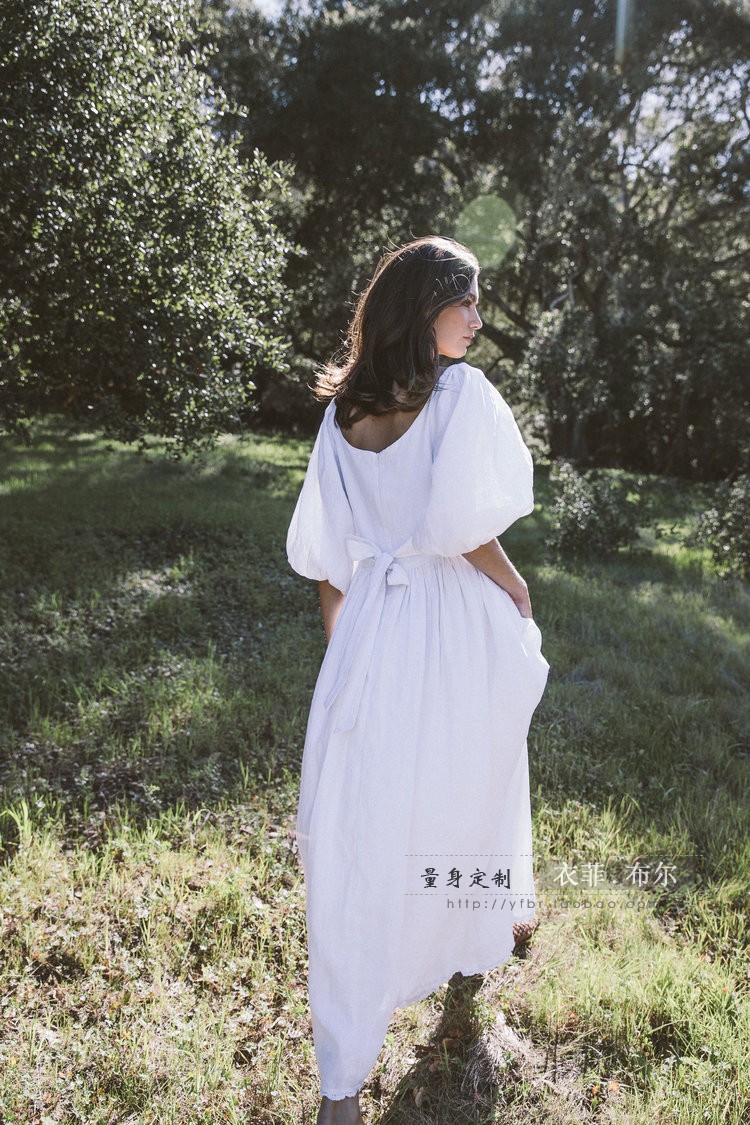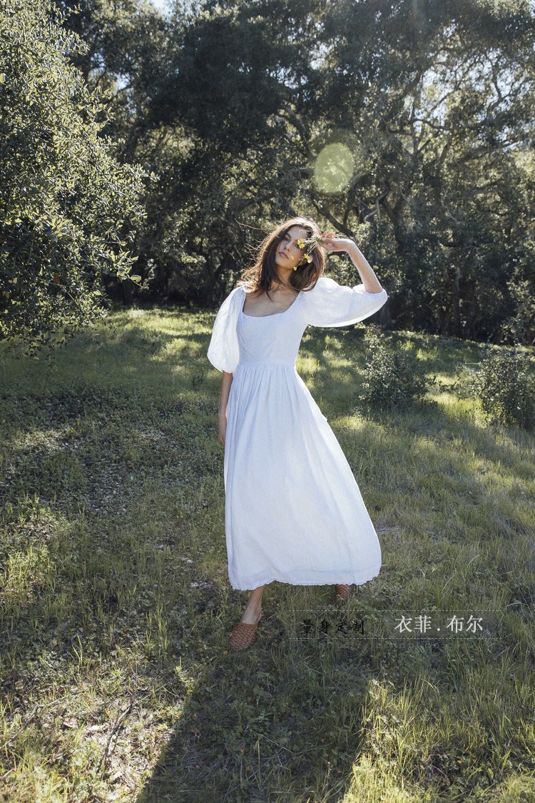 动漫周边 > 服饰 > 法式复古超仙高腰白色长裙收腰显瘦亚麻灯笼袖智熏桔梗度假连衣裙