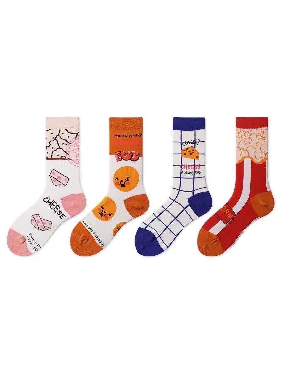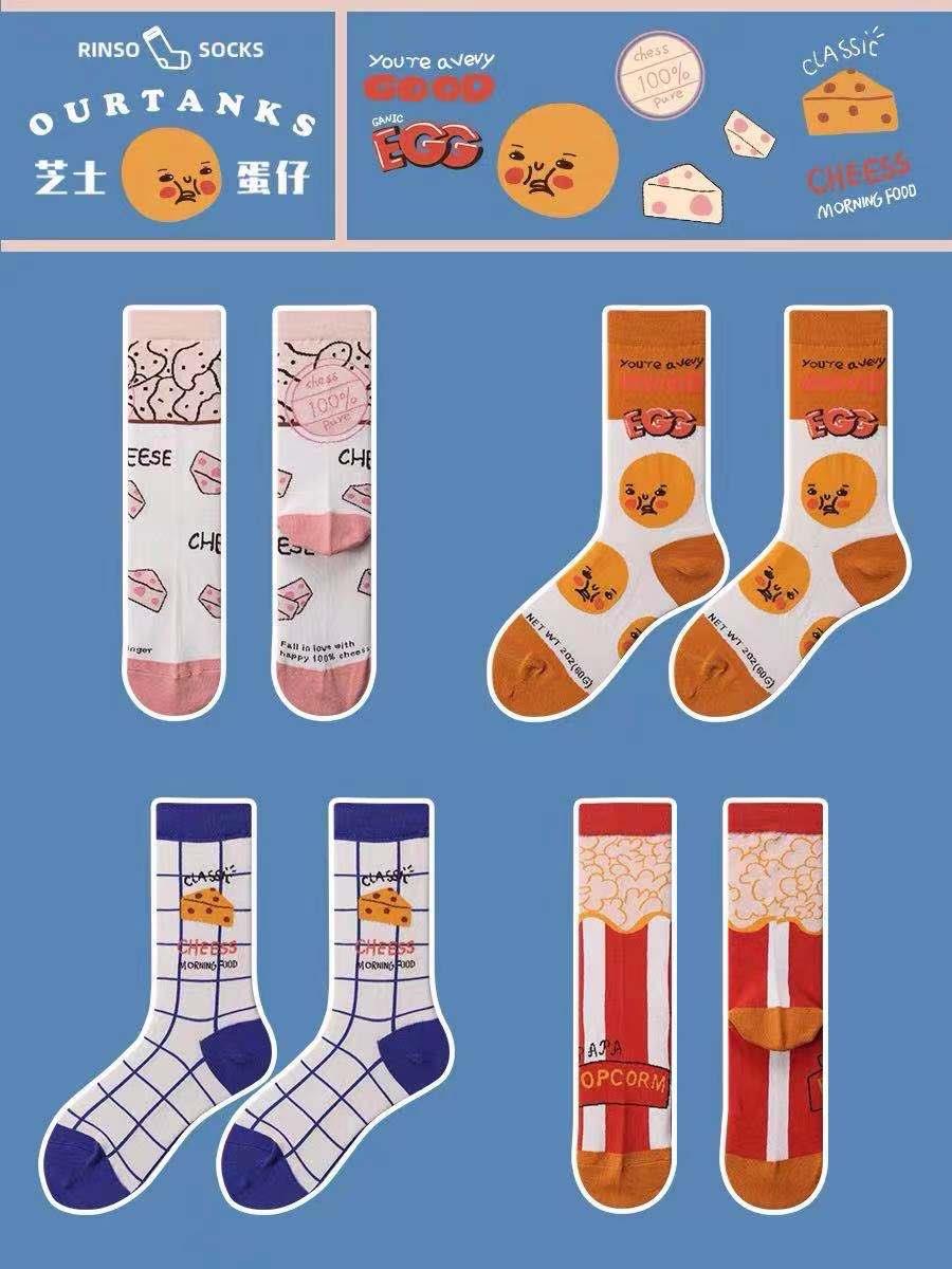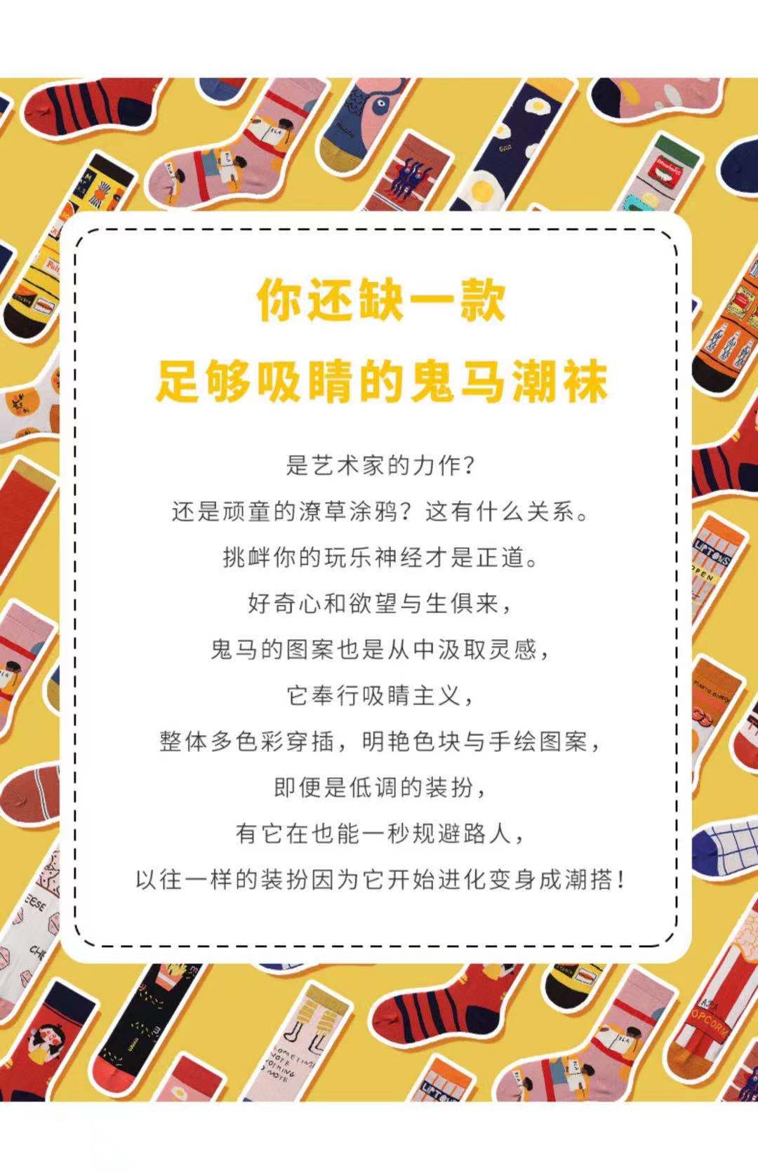 动漫周边 > 服饰 > 新款设计师原创男女情侣款卡通街头春秋可爱ins潮中筒薄款长棉袜