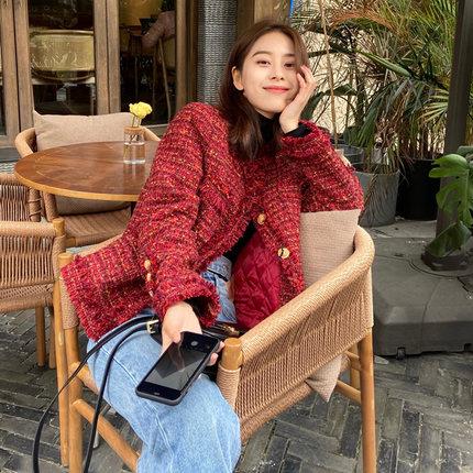 动漫周边 > 服饰 > 2020年冬季新年衣服过年女装小香风红色毛呢外套秋冬百搭短款加厚