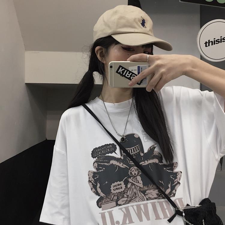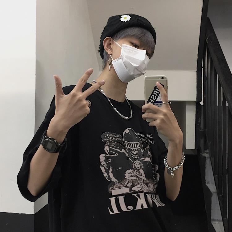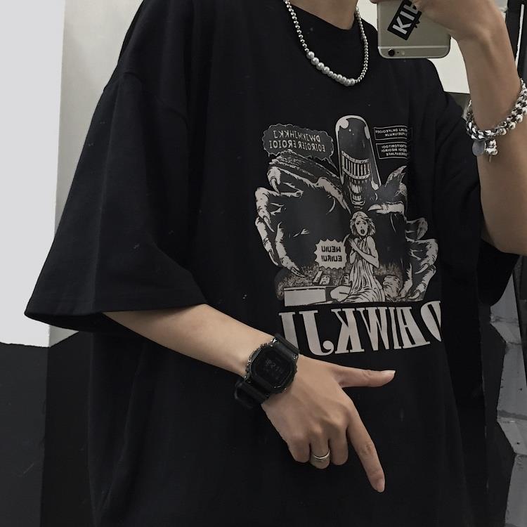 动漫周边 > 服饰 > 原创暗黑风ins高街救救公主印花颓废丧系宽松短袖情侣装t恤男女潮