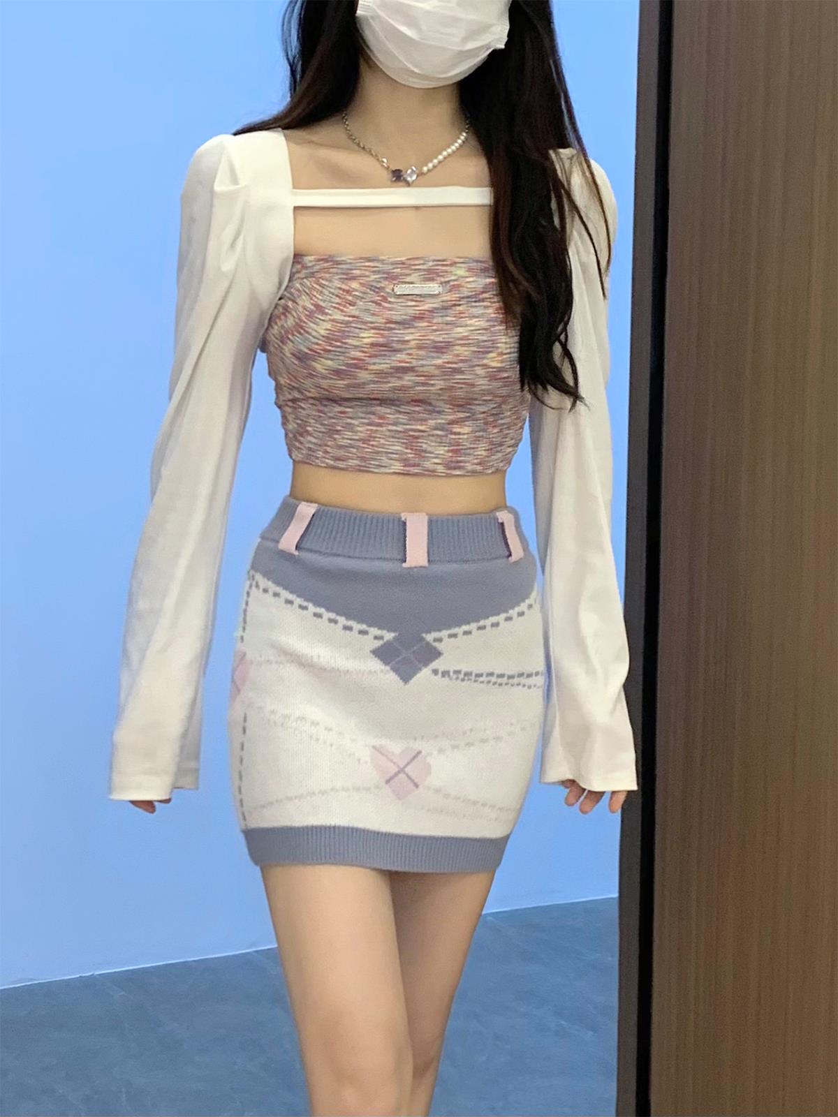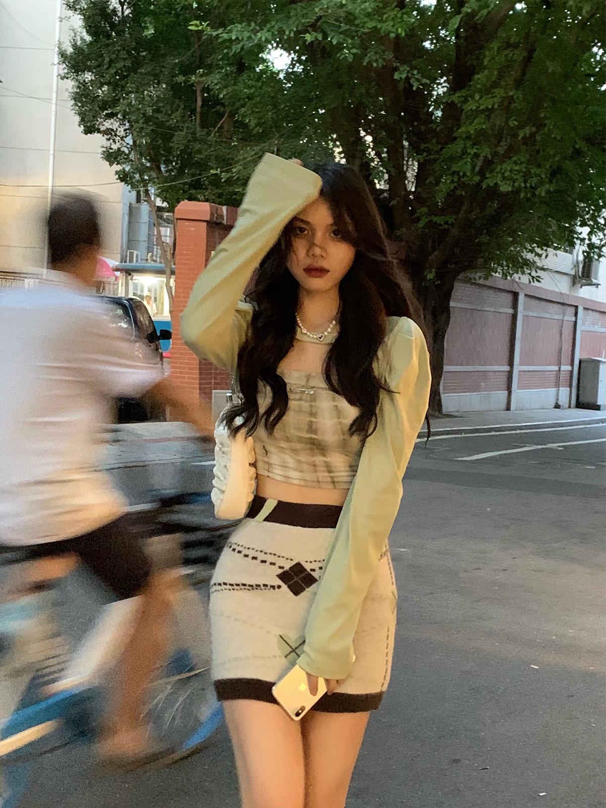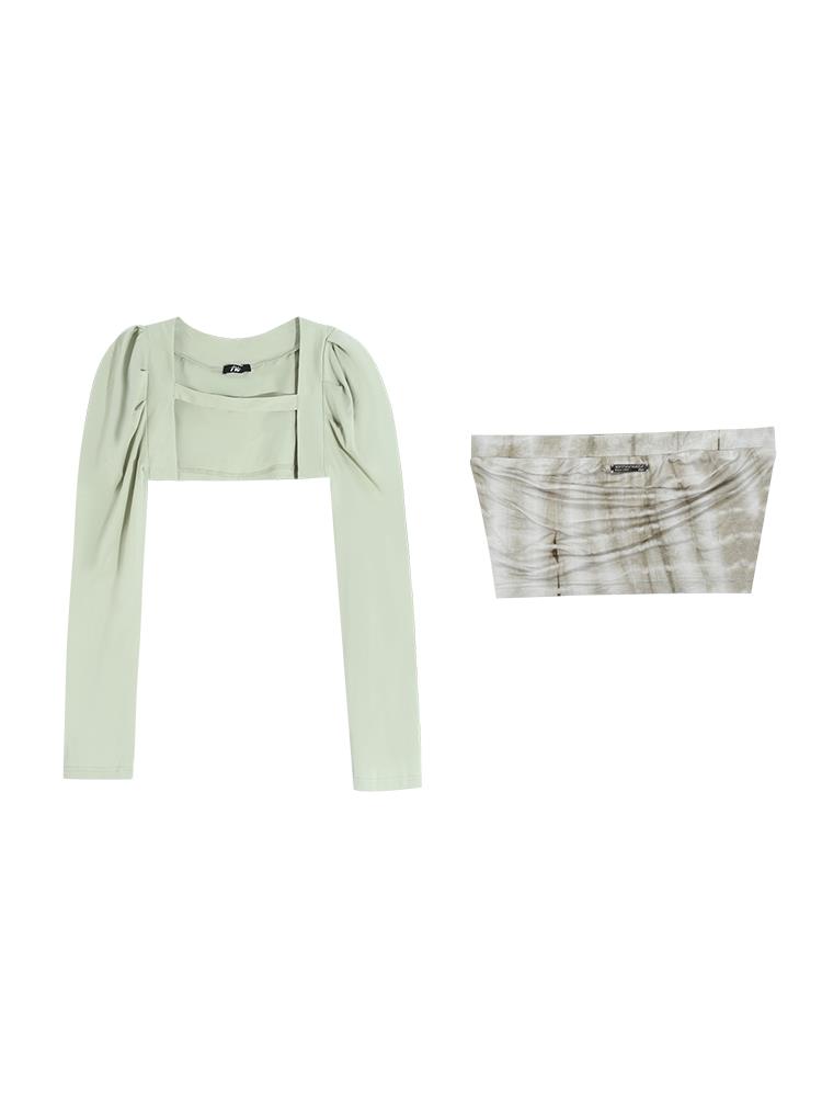 内搭抹胸3种扎染面料颜色,在视觉上有一定的膨胀效果