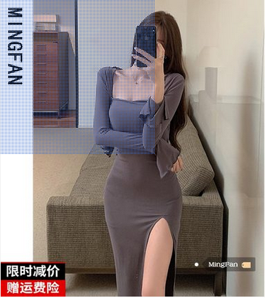 动漫周边 > 服饰 > 2021年女装秋季新款修身法式开叉吊带连衣裙+长袖外套两件套装裙