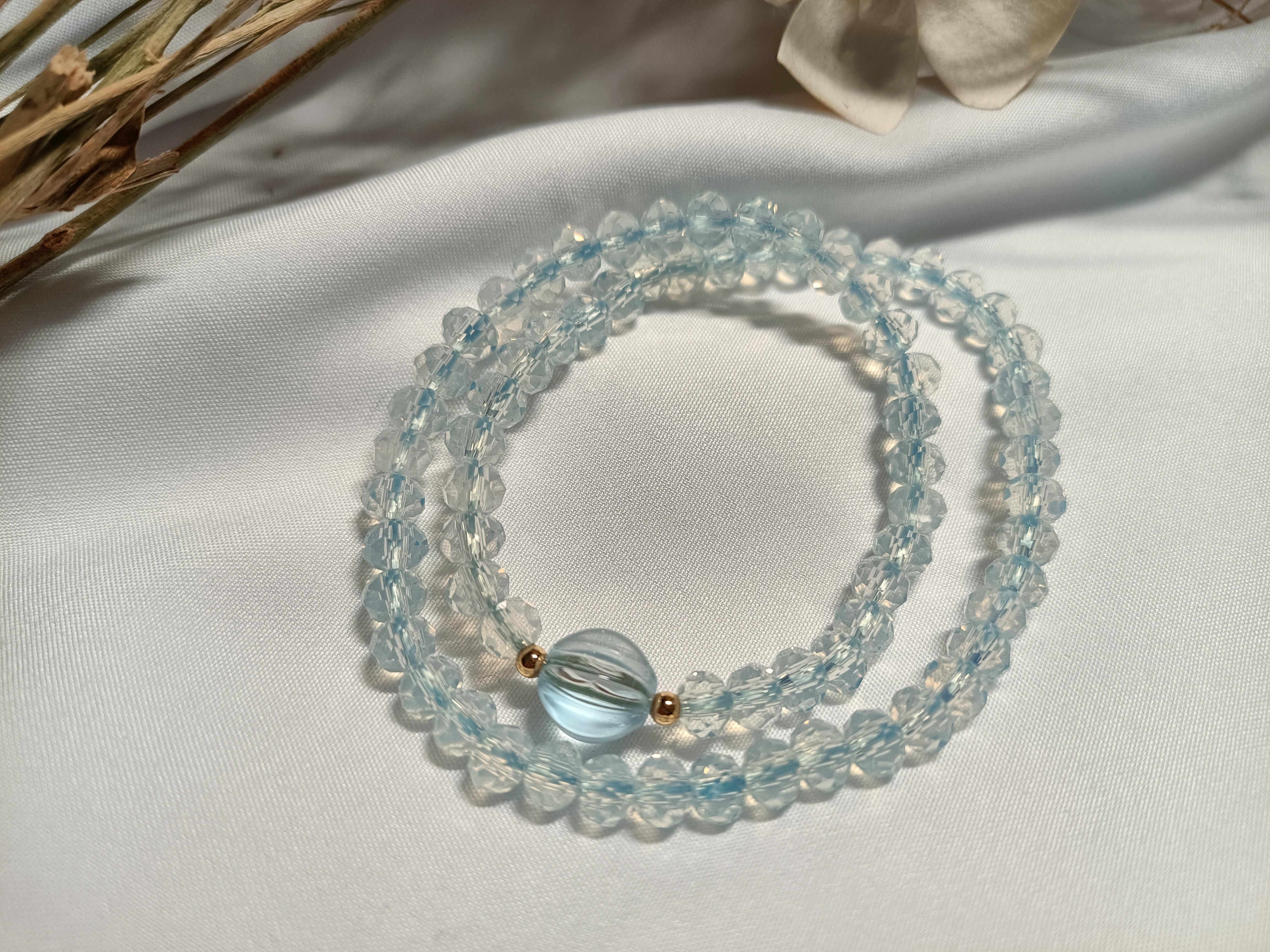 本产品为蛋白石多圈手串,透透的蓝色多圈相较单圈更富韵味。