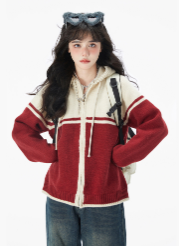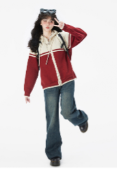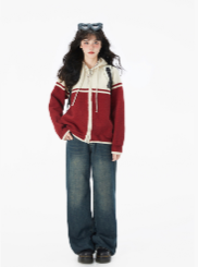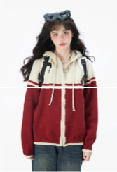 动漫周边 > 服饰 > 连帽开衫针织外套慵懒风宽松圣诞红色毛衣女