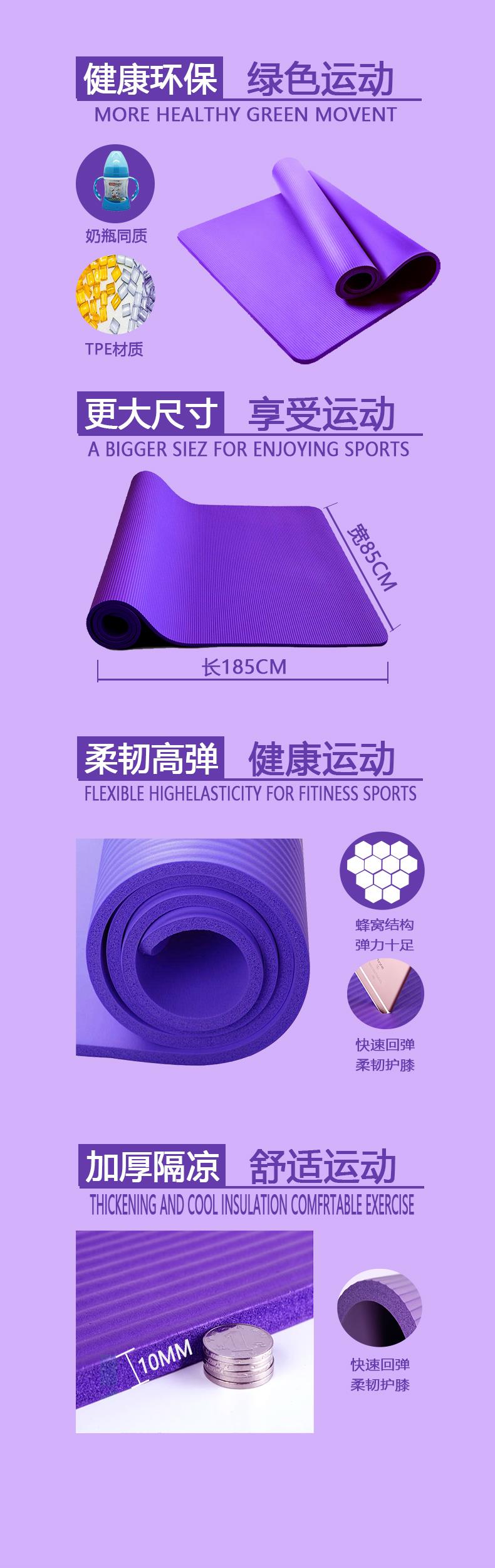 瑜伽垫,就是练瑜伽时铺在下面垫子,瑜伽垫的材质一般分为TPE发泡、PVC发泡、EVA、乳胶垫、CBR垫子等。瑜伽垫表面颗粒均匀,气泡饱满,手感柔软,且无毒、无味、防滑、回弹能力强,具有很强的抗撕拉能力,是瑜伽练习者的理想选择。此外,瑜伽垫还能有效阻隔地面寒气,抓地力强,具有突出的回弹性、平整性、防滑性、以及人体皮肤亲和性。可以在上面进行其它的一些健身运动,适合儿童玩耍铺垫,野外露营垫子使用。