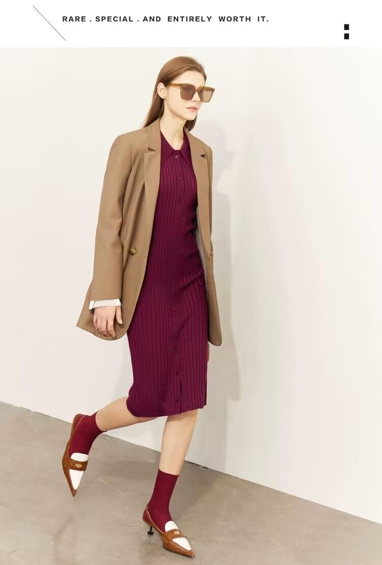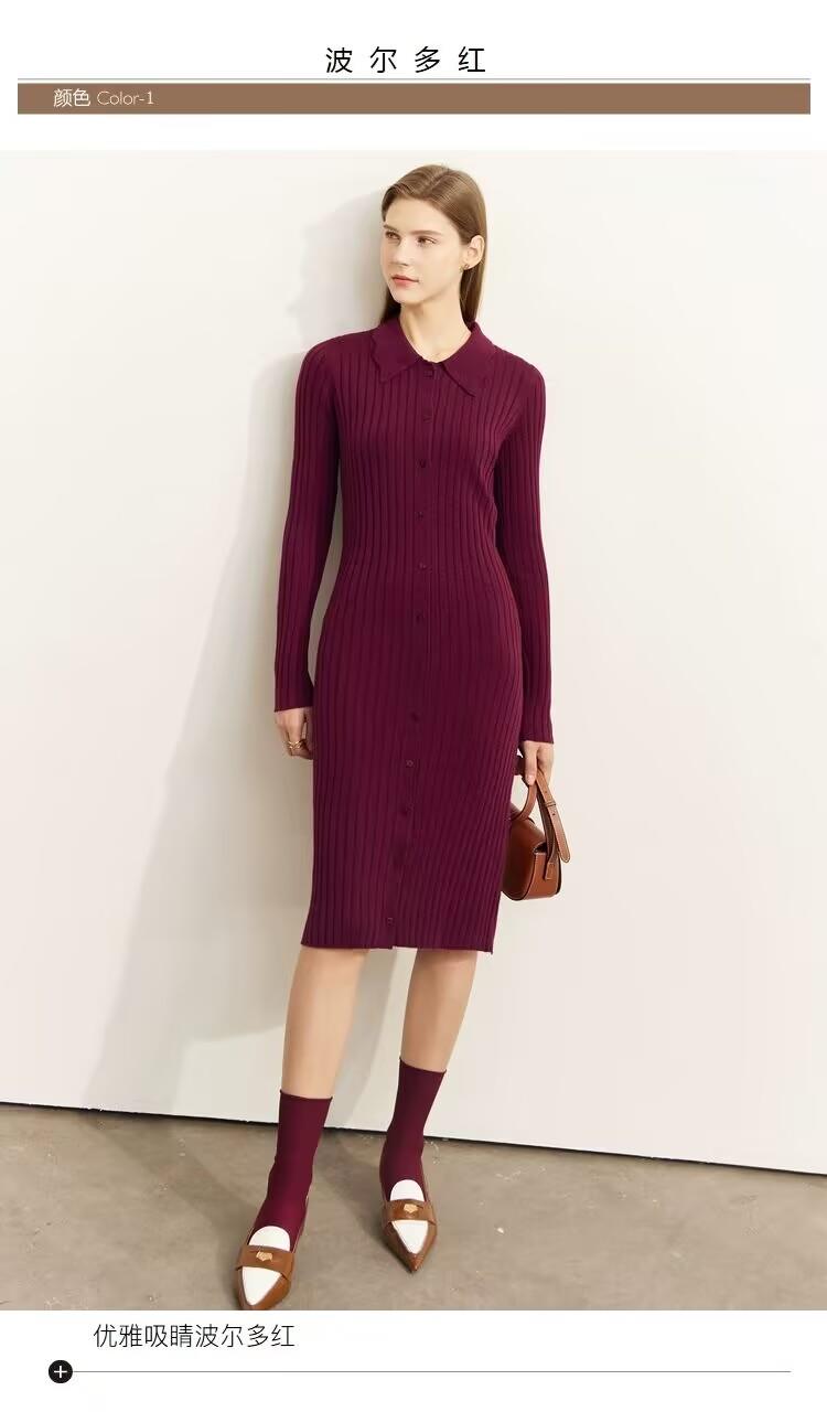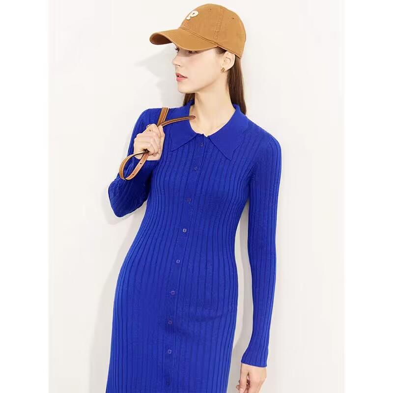 新款波浪边翻领高级感连衣裙修身显瘦毛针织裙子