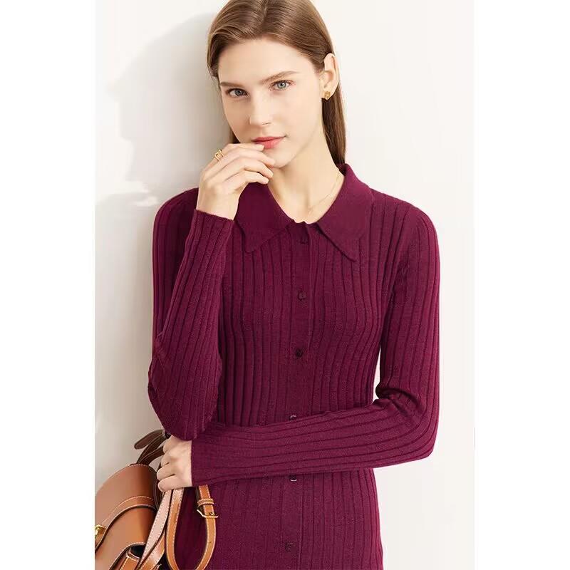 动漫周边 > 服饰 > 新款波浪边翻领高级感连衣裙修身显瘦毛针织裙子