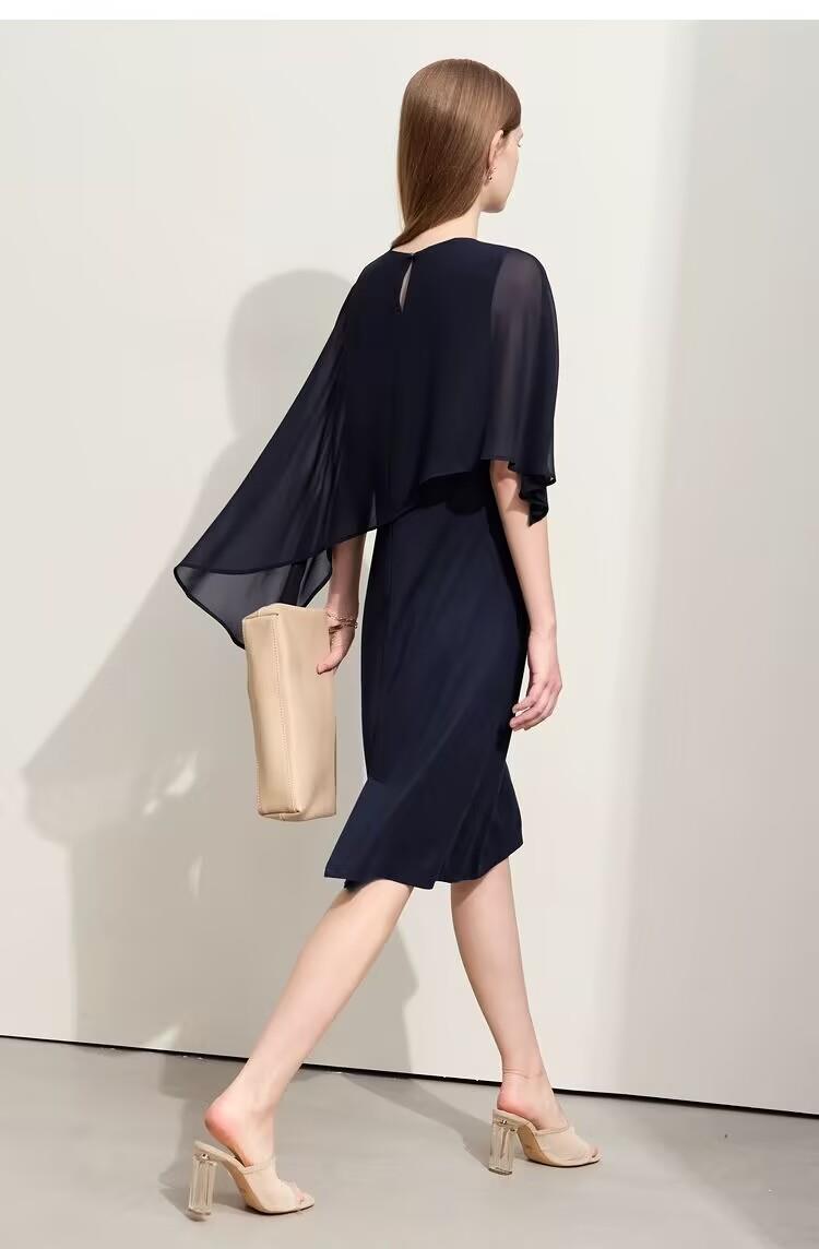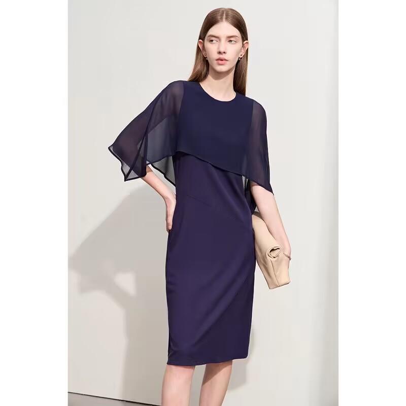 • 商品名称:新款优雅圆领撞料拼雪纺连...