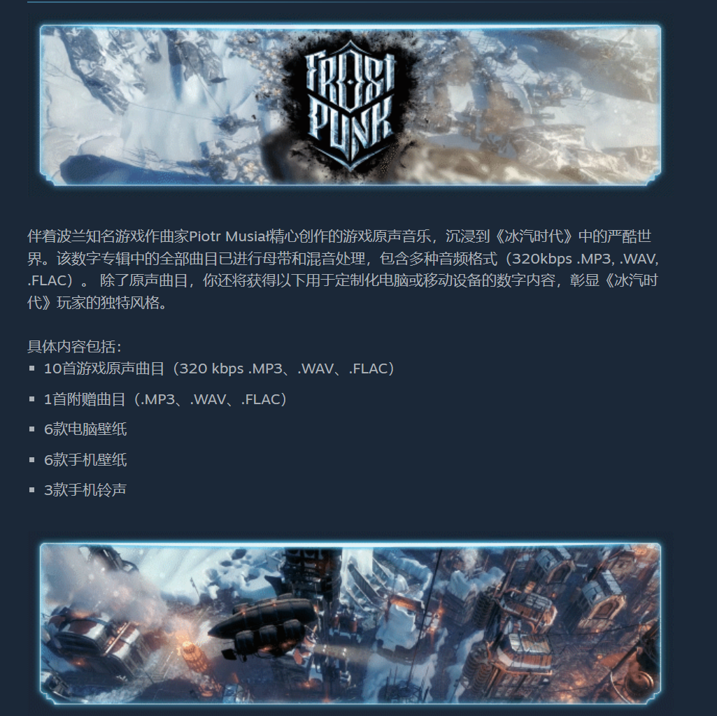 《FrostPunk》冰汽时代官方正版游戏原声音乐配乐专辑正在发售!