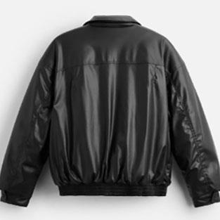 仿皮面料宽松版型夹克外套,棉服衬里。翻领长袖,袖口饰有纽扣。胯部设有单边口袋。弹力下摆。正面翻盖下暗拉链和按扣闭合。这款夹克专为男性设计,集时尚与实用于一身。它采用宽松版型,保证穿着舒适自在,无论是日常活动还是休闲时光都能轻松应对。
