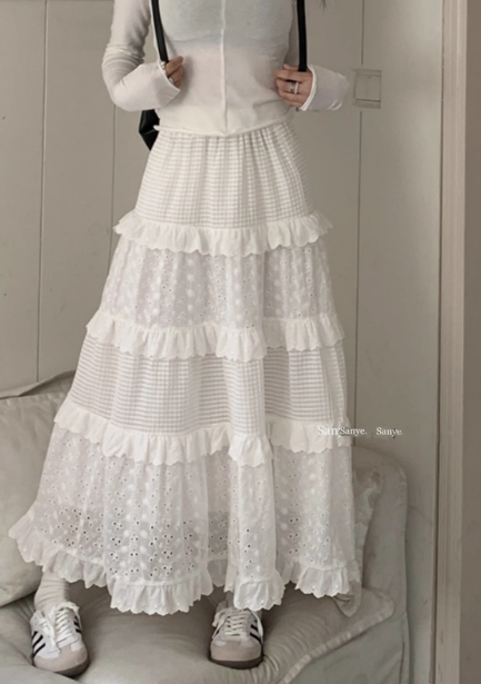 白色半身裙女春季新款高腰a字裙蛋糕裙温柔风长裙设计感小众裙子