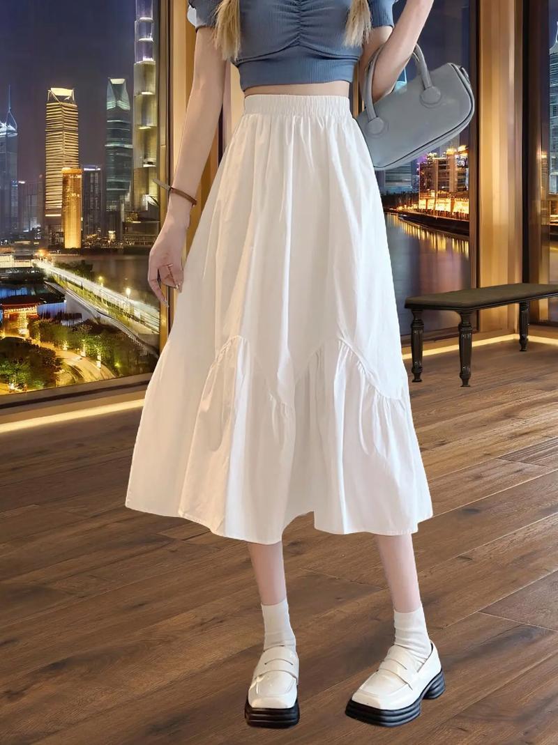 动漫周边 > 其它 > 白色半身裙春季高腰显瘦女垂感长裙小个子蛋糕裙