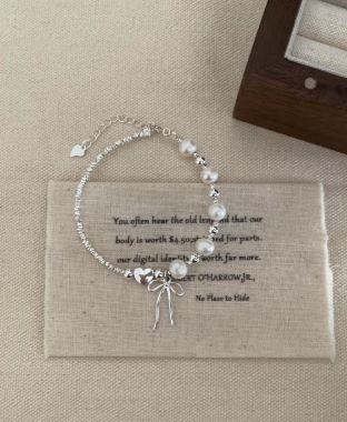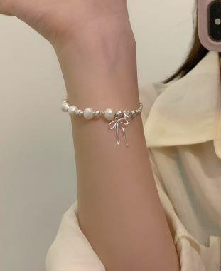 蝴蝶结,珍珠和碎银子拼接的精致手链!