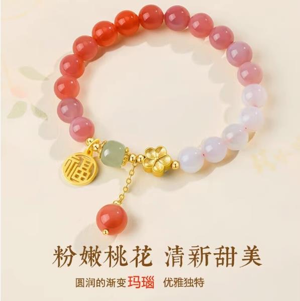 水晶与佛珠等饰品背后的寓意,源自其独特的物理特性以及深厚的文化信仰。就像春日里盛开的桃花,绚烂而动人,愿这桃花手链,不仅装点你的手腕,更能成为你心中那份纯正爱情的见证。