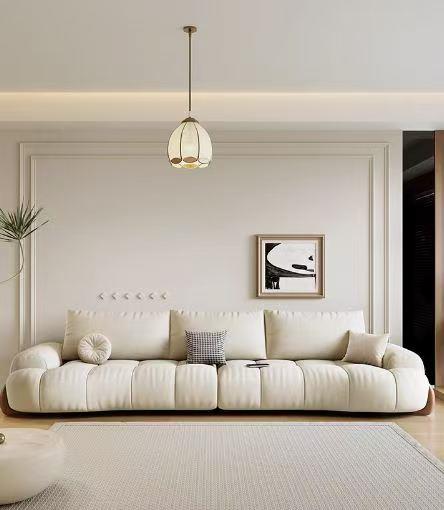 1. 颜值天花板: 奶油色主调+饱满泡芙造型,像把云朵搬进家!搭配同色系抱枕,柔和治愈,适配侘寂风、奶油风等家装,轻松营造温馨松弛的客厅氛围
