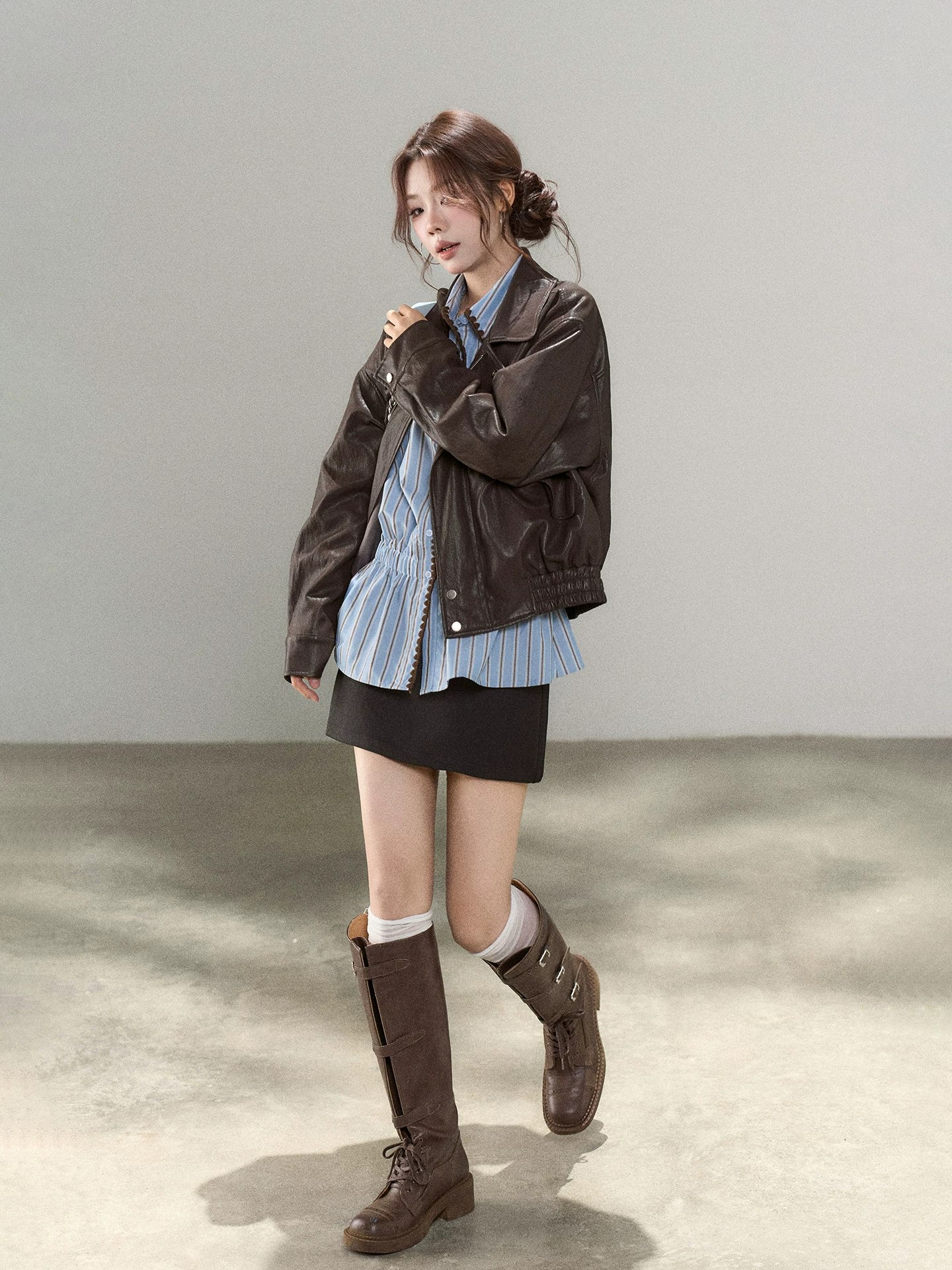 动漫周边 > 服饰 > 美式棕色高级感皮衣外套女2025秋季新款设计感短款夹克