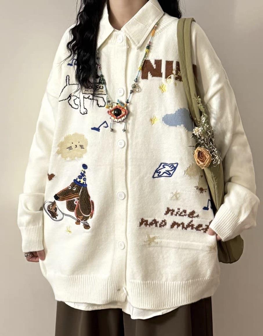 秋冬美式复古毛衣开衫,趣味小狗刺绣,宽松休闲,适配多元穿搭,氛围感拉满。