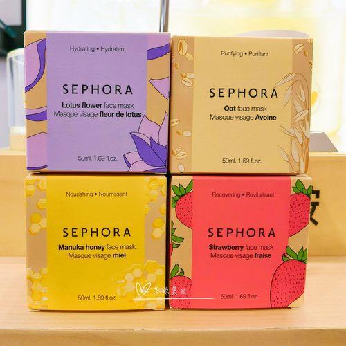 此外,丝芙兰还有蜂蜜滋养平衡晚安面膜、莲花水润舒颜晚安面膜等,各自含有不同的天然萃取物,针对不同的肌肤问题提供相应的护理效果。3