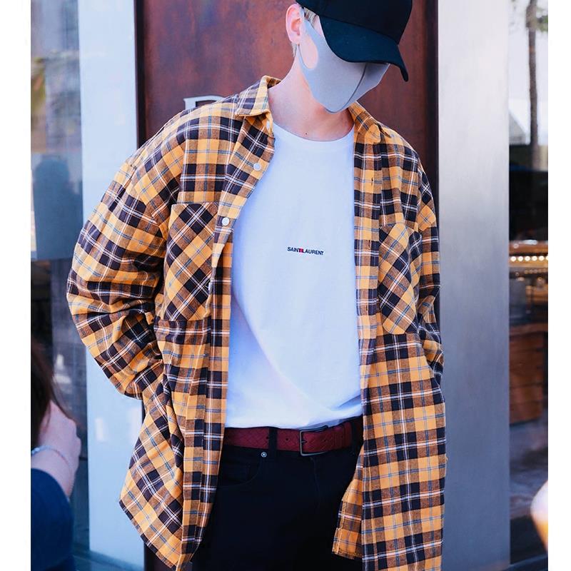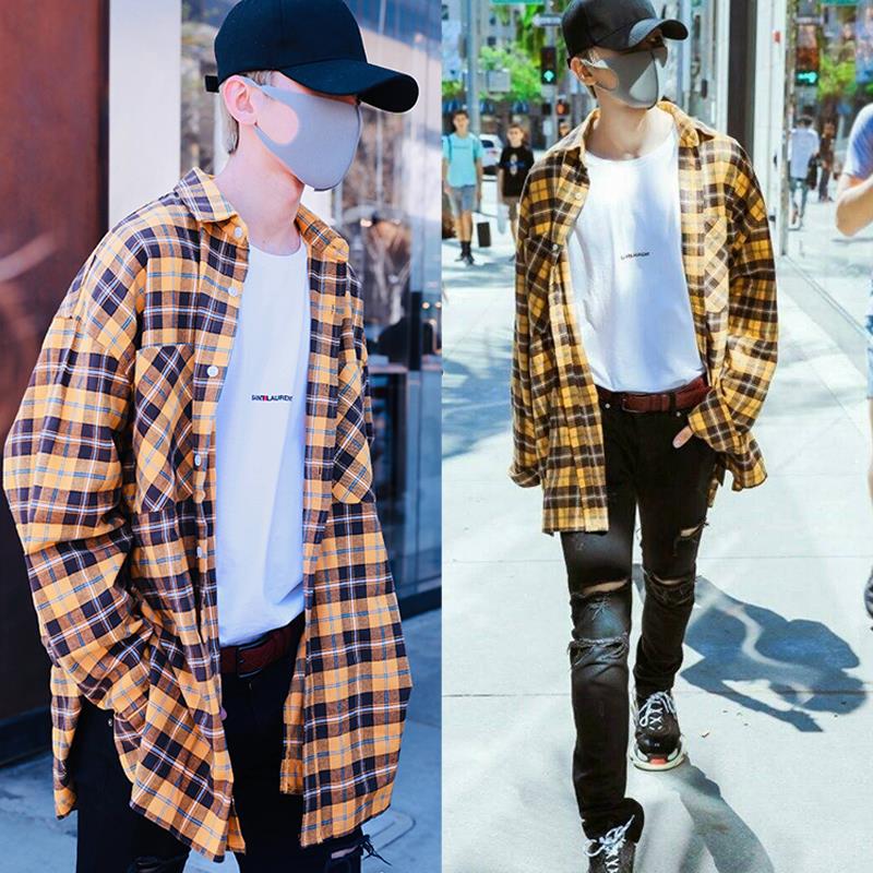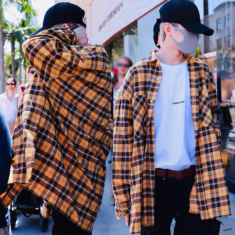 蔡徐坤同款格子衫男外套比伯同款嘻哈宽松衬衫女学生中长韩版上衣