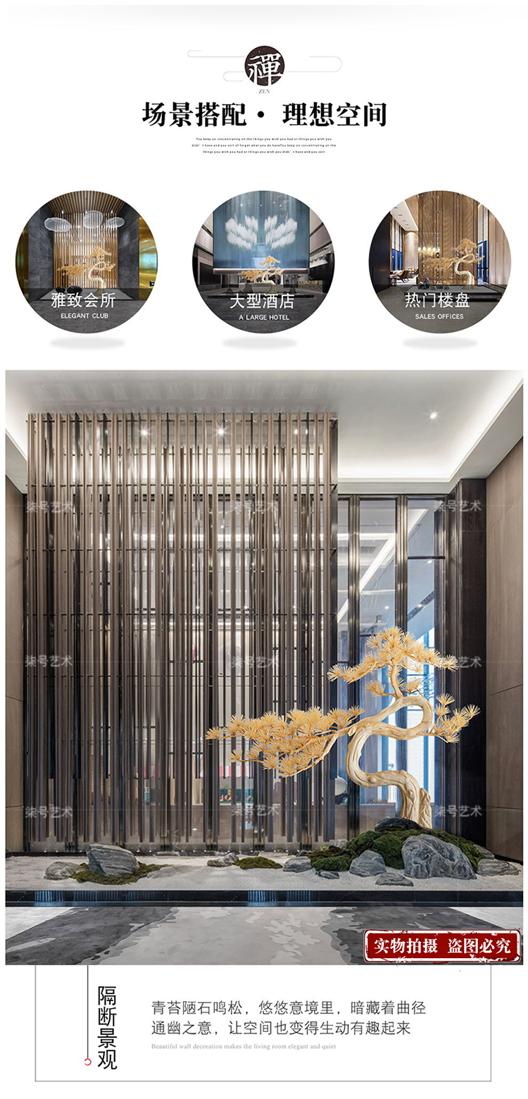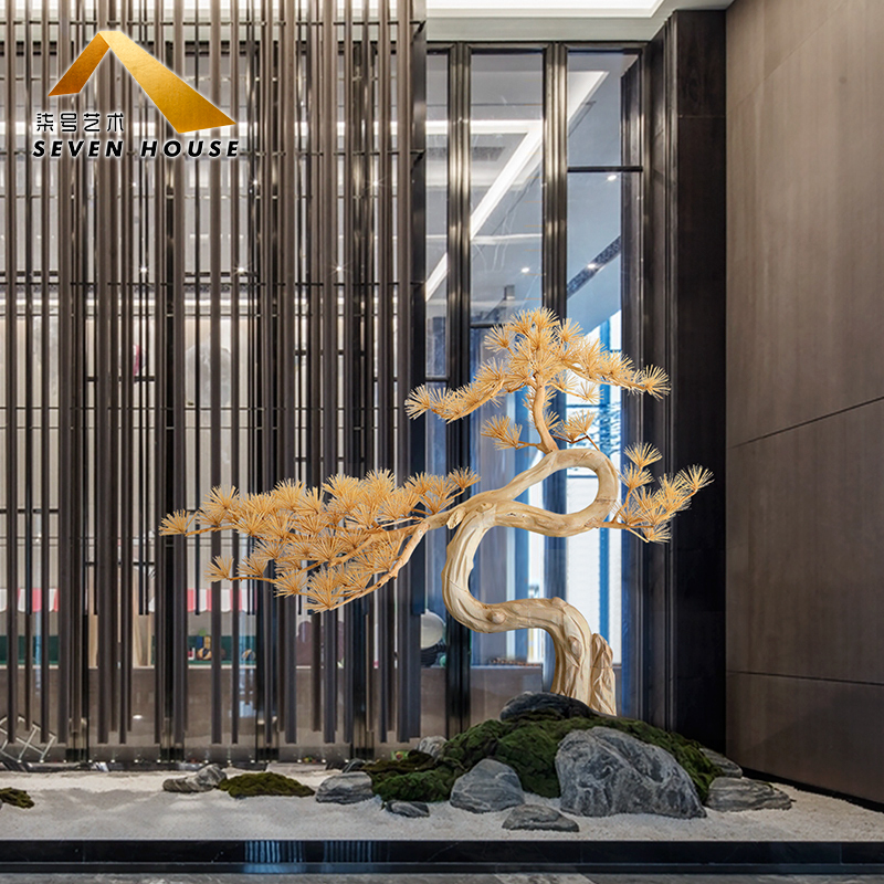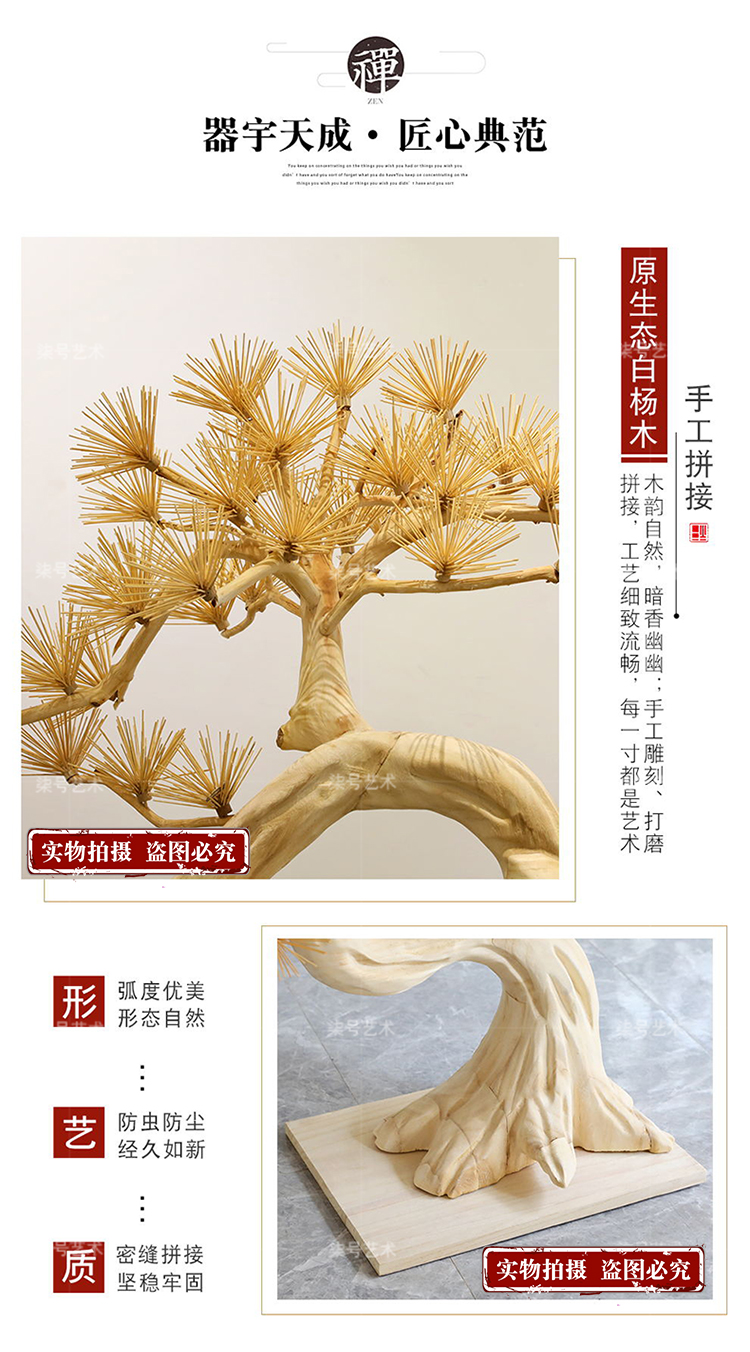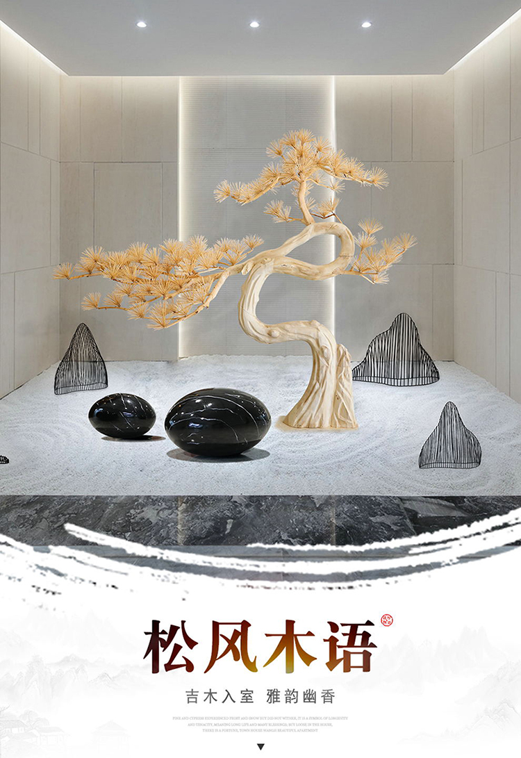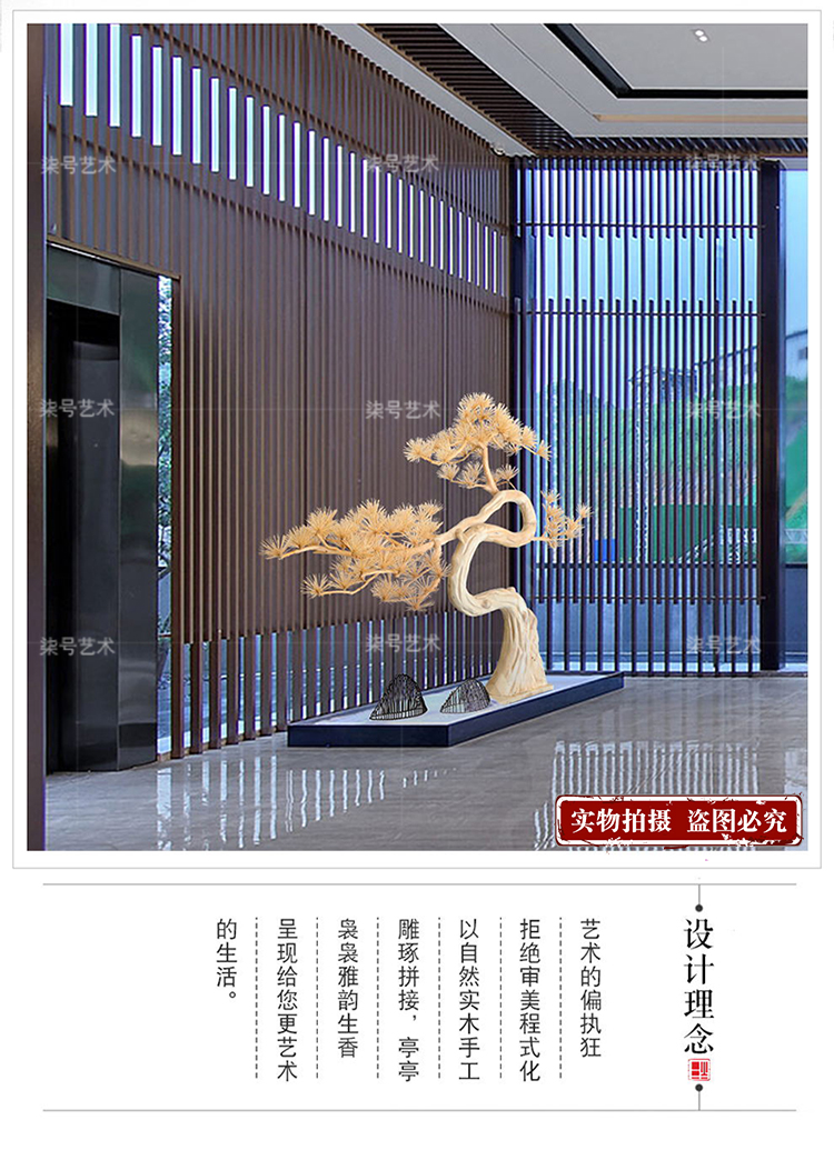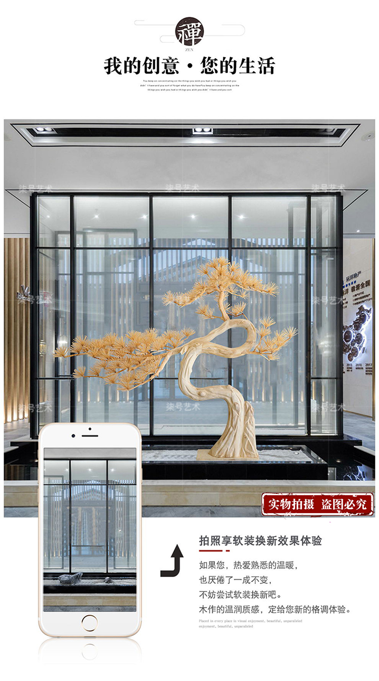 家居用品、厨卫清洁 > 装饰品 > 酒店木雕迎客松树落地大摆件售楼处软装大厅装置艺术品大型工艺品