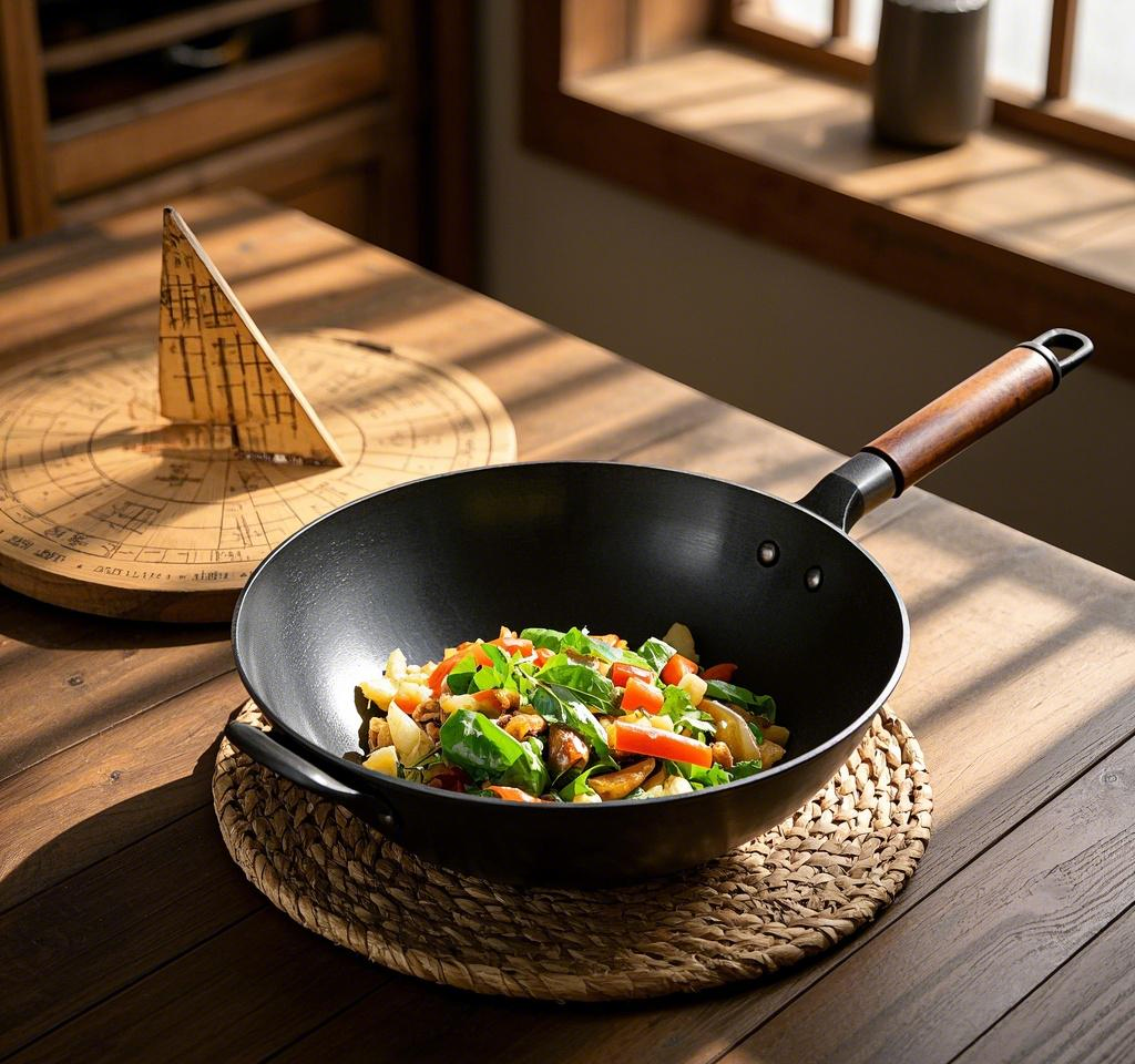「瞬焰核心」:5mm厚古法铸铁,蓄热达300℃仍稳定,猛火爆炒时镬气如龙卷升腾