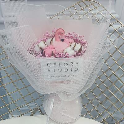 用材:白色木棉、粉色木棉、进口粉色满天星、火烈鸟、串灯