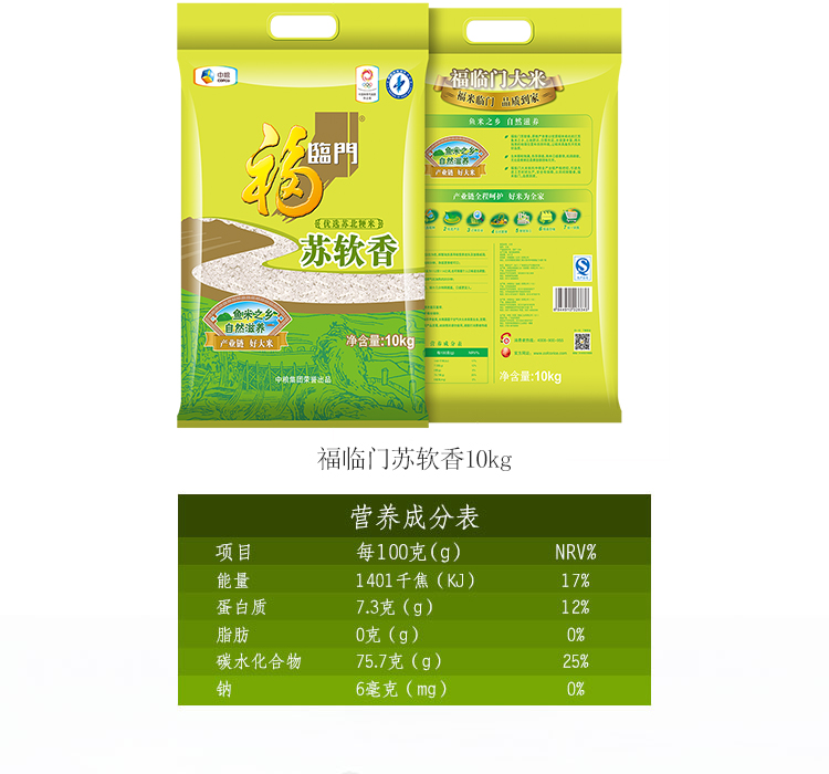 • 商品名称:福临门苏北米 苏软香10kg ...