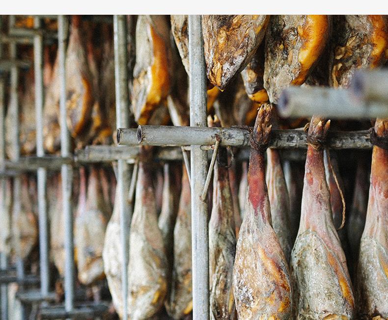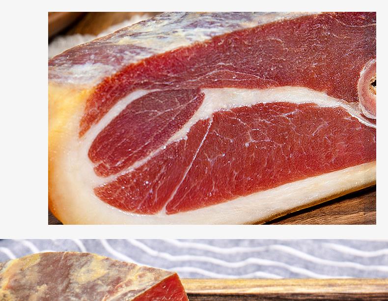精选优质经过检验疫苗的猪腿肉,传统工艺无碘海盐手工腌制。发酵成熟,经过短期自然发酵,肉质细嫩。
