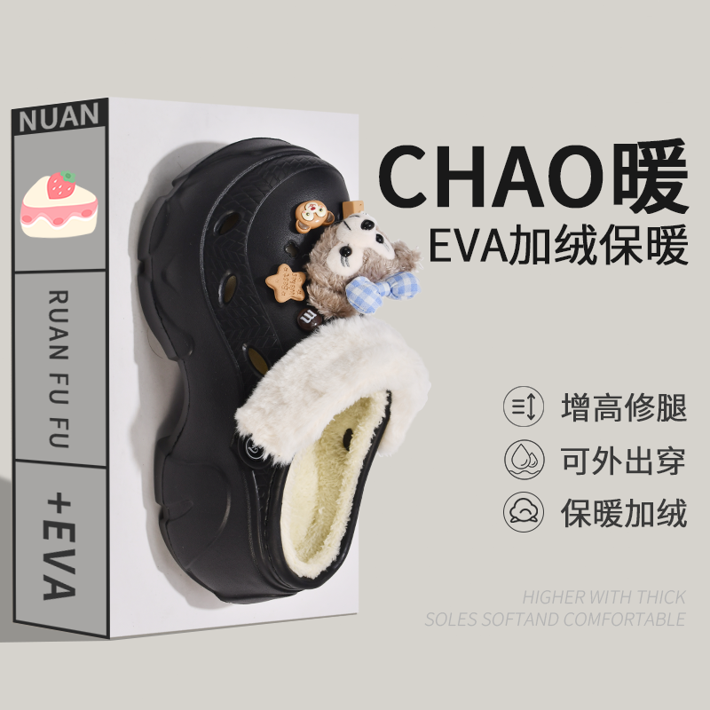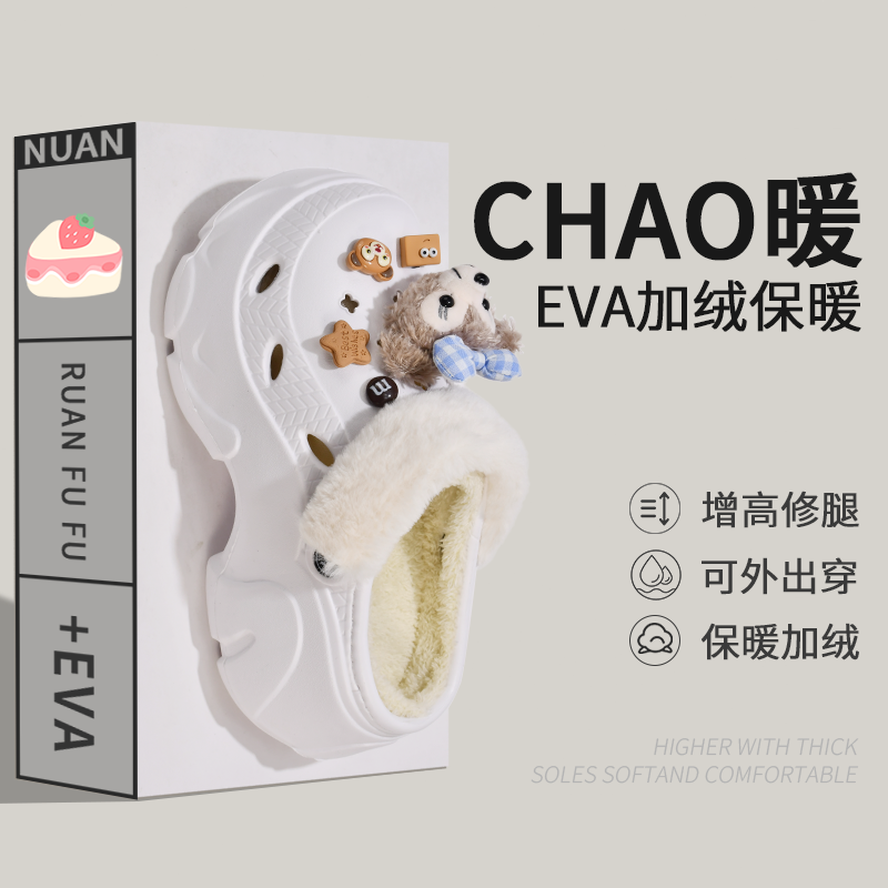 后跟高: 中跟帮面材质: EVA款式: 套趾跟底款式: 松糕底适合场合: 日常里料材质: 人造短毛绒销售渠道类型: 商场同款(线上线下都售)适用对象: 青年是否库存:否