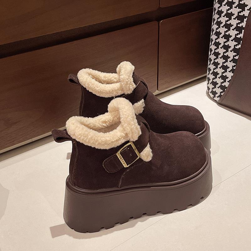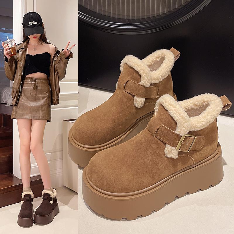 靴筒内里材质: 人造短毛绒靴筒面材质: 绒面帮面材质: 绒面鞋面内里材质: 人造短毛绒靴款品名: 时装靴筒高: 中筒靴鞋头款式: 圆头后跟高: 中跟跟底款式: 摇摇底