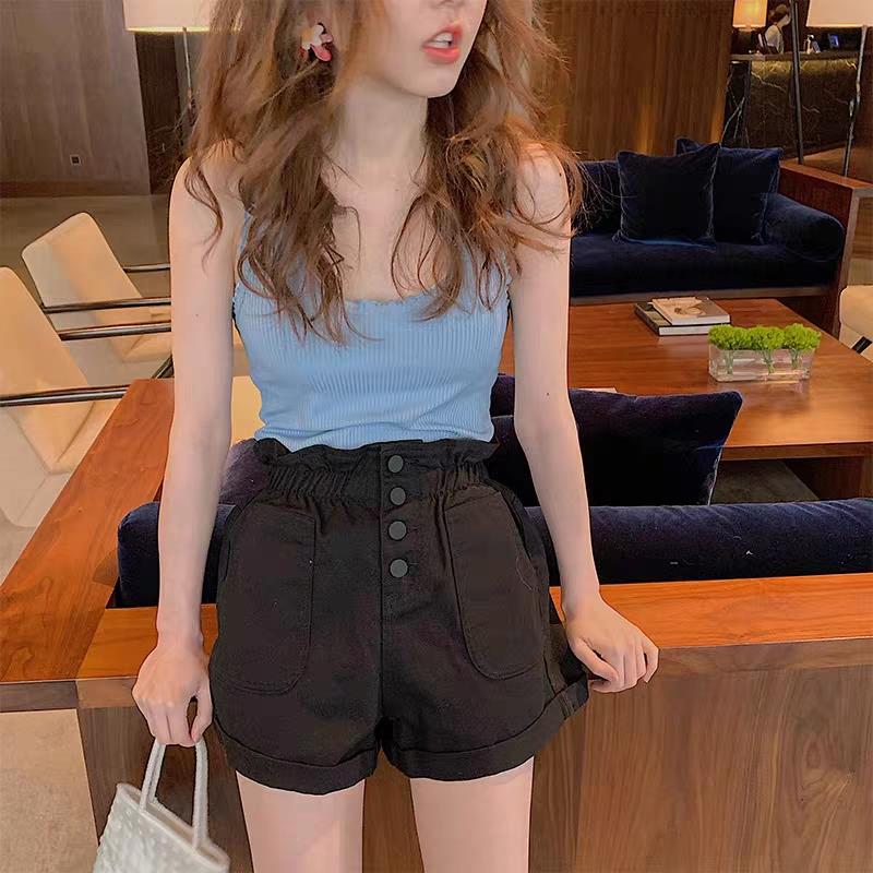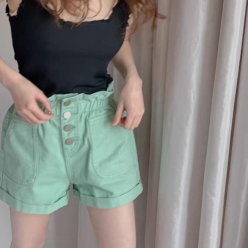 能很好的将小肚子隐藏起来往下是带点A字版型的宽松裤腿做了翻折边,比常规短裤更显瘦造型感也更强些