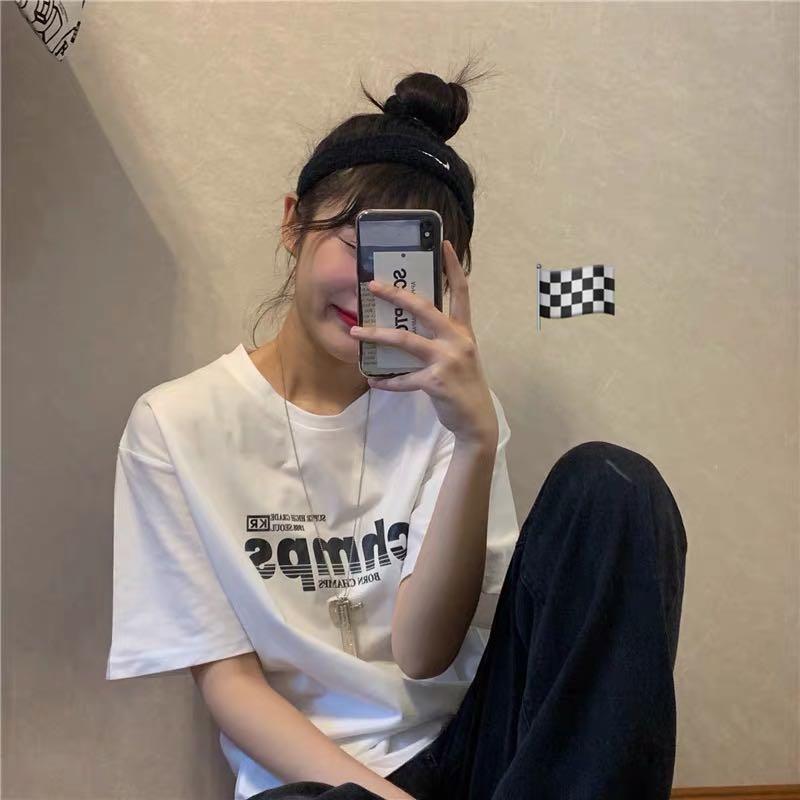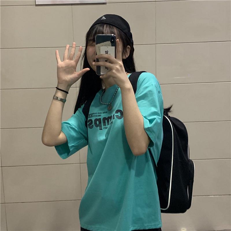 动漫周边 > 服饰 > 韩版ins字母印花宽松绿色显白纯棉短袖T恤女
