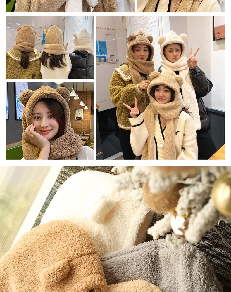 动漫周边 > 服饰 > 小熊帽子新款2020网红秋冬季围巾女士防风连帽一体百搭三件套耳朵