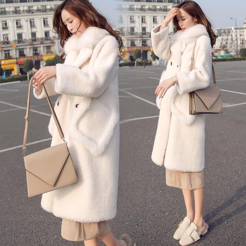 动漫周边 > 服饰 > 羊羔毛皮毛一体外套女2020冬季新款颗粒绒中长款白色毛领皮草大衣