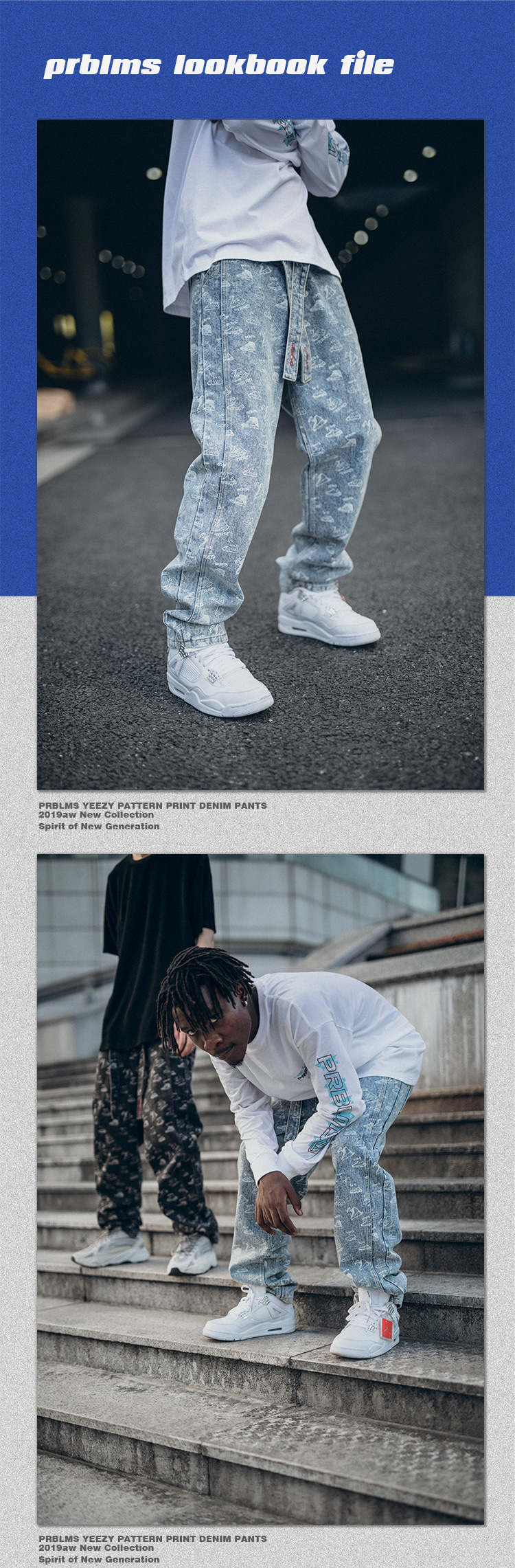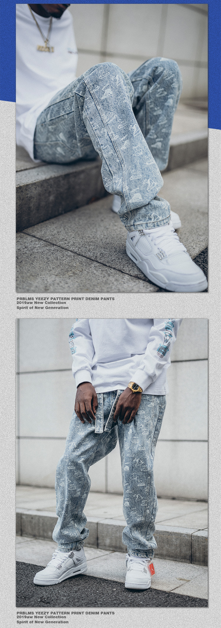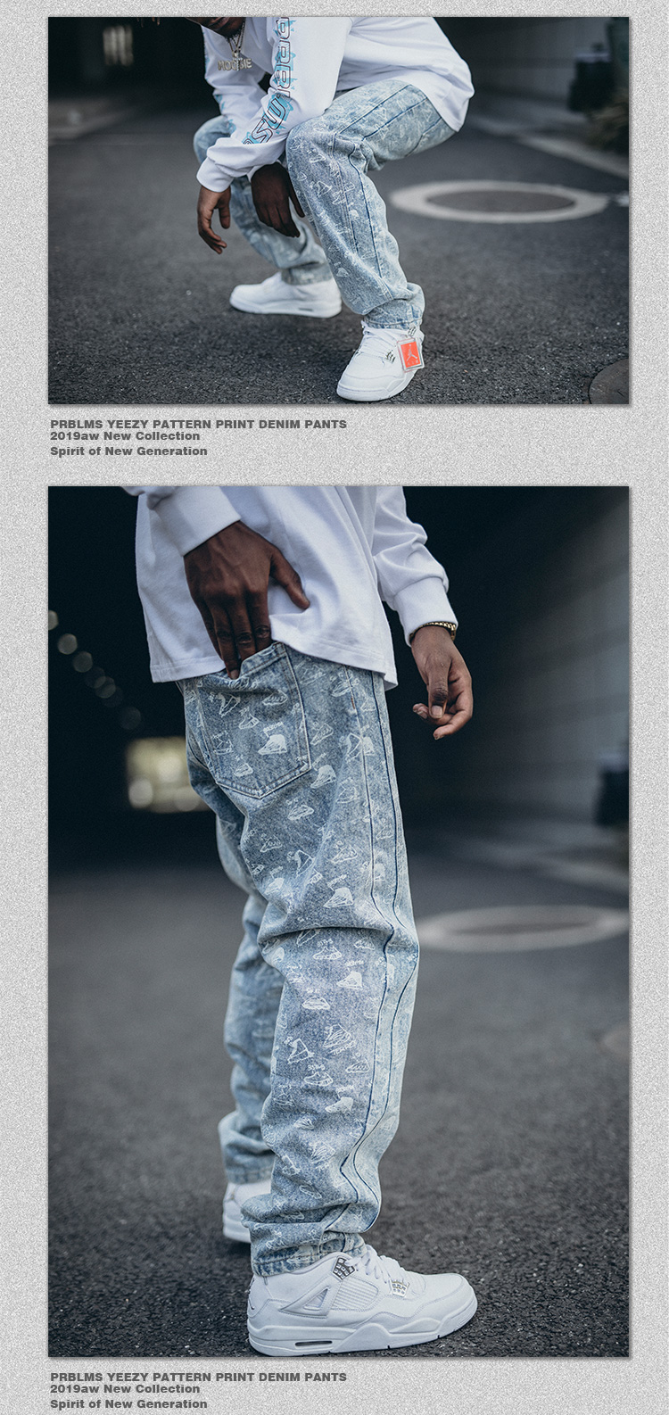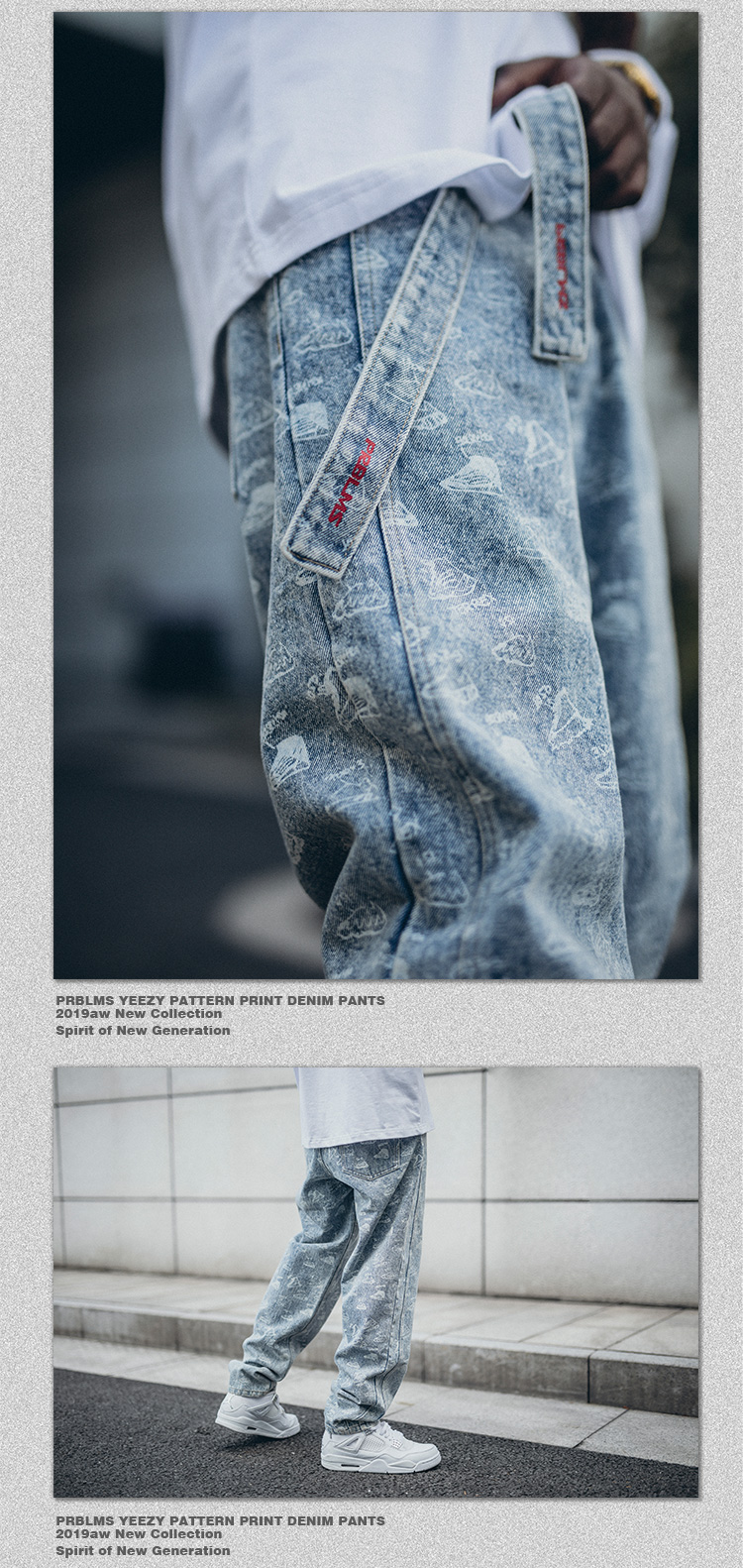 • 商品名称:PRBLMS潮牌个性满印牛仔裤...