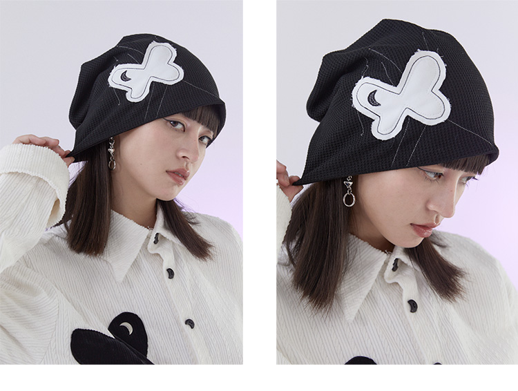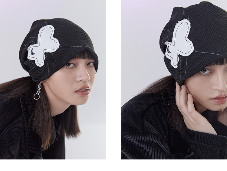 OceanMine原创设计 冬季百搭拼接蝴蝶撞色毛边甜酷黑色保暖冷帽